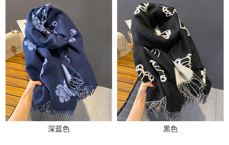 새로운 라인 베어 캐시미어 스카프 여성의 한국식 겨울 귀여운 모든 매치 스카프 따뜻한 방한 기모 숄