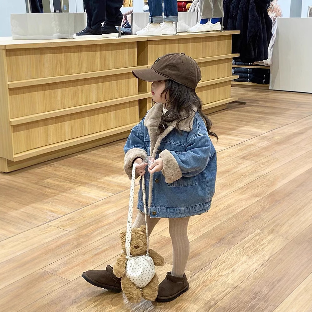 소년과 소녀 중립 회색 토끼 마오 내부 데님 두꺼운 따뜻한 코트 조수의 따뜻한 두꺼운 ~ 한국어 버전