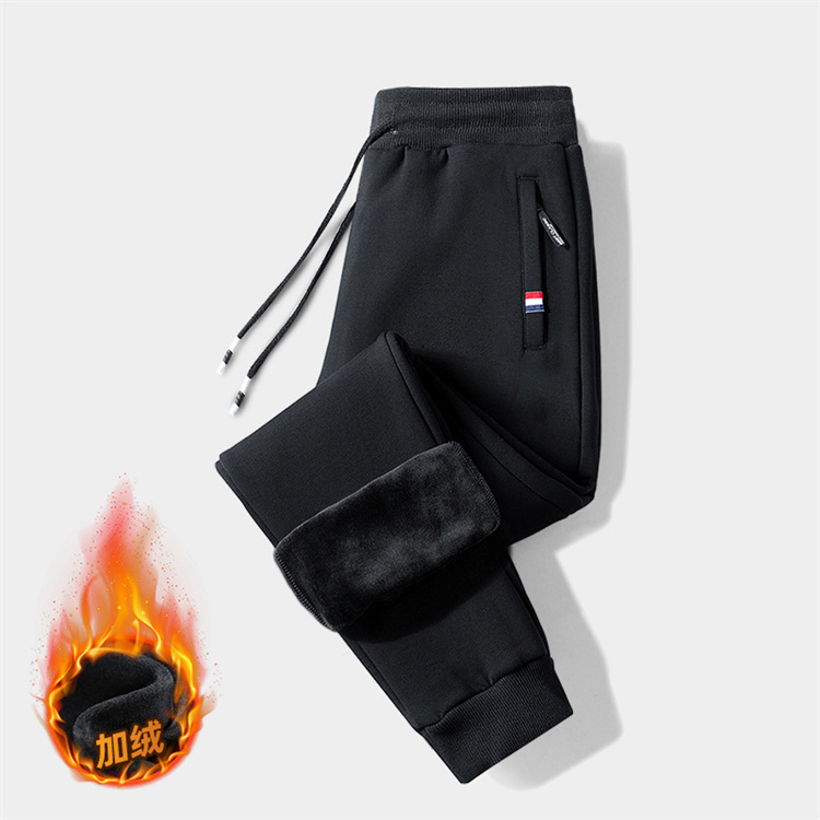 겨울 웨이 바지 남자의 기모 두꺼운 따뜻한 바지 소년 캐주얼 모든 일치 유행 발 바지 공장 아울렛