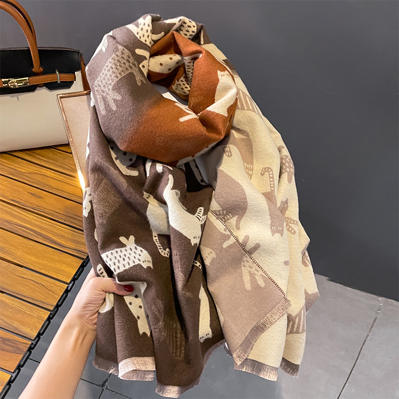 한국식 그라디언트 고양이 모방 캐시미어 스카프 여성의 겨울 따뜻한 목도리 기모 새로운 틈새 디자인 스카프스토어 가기
