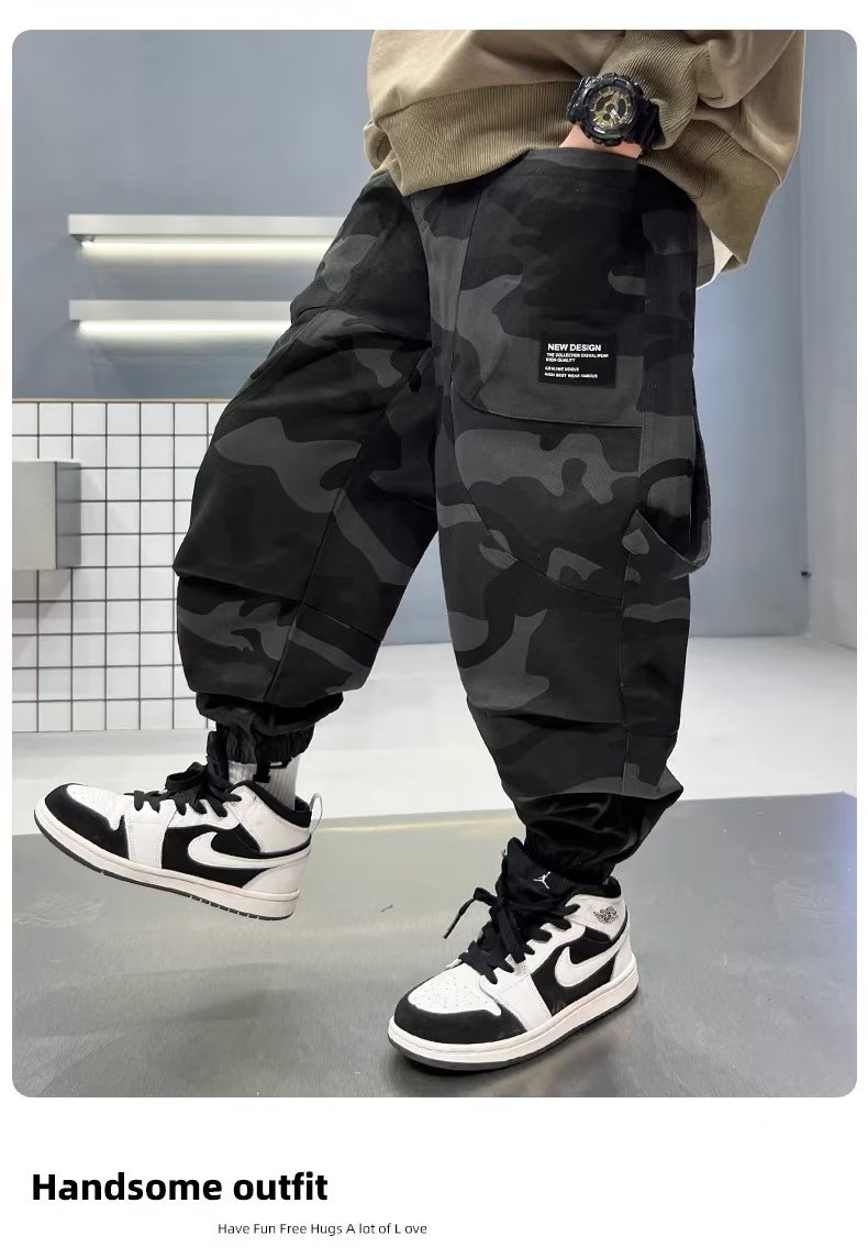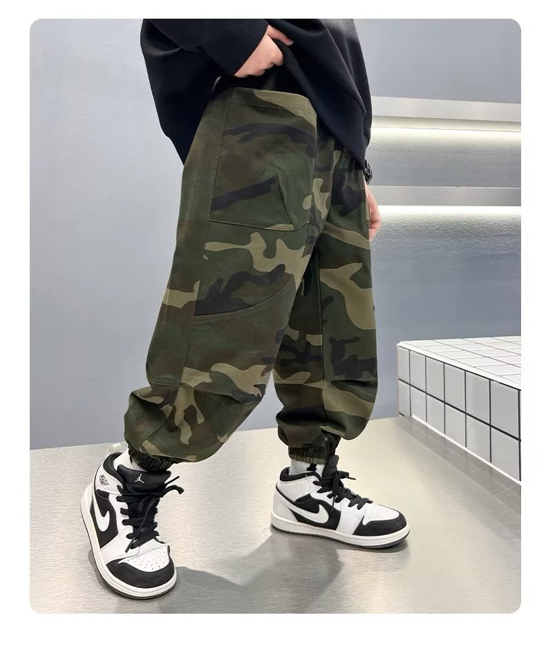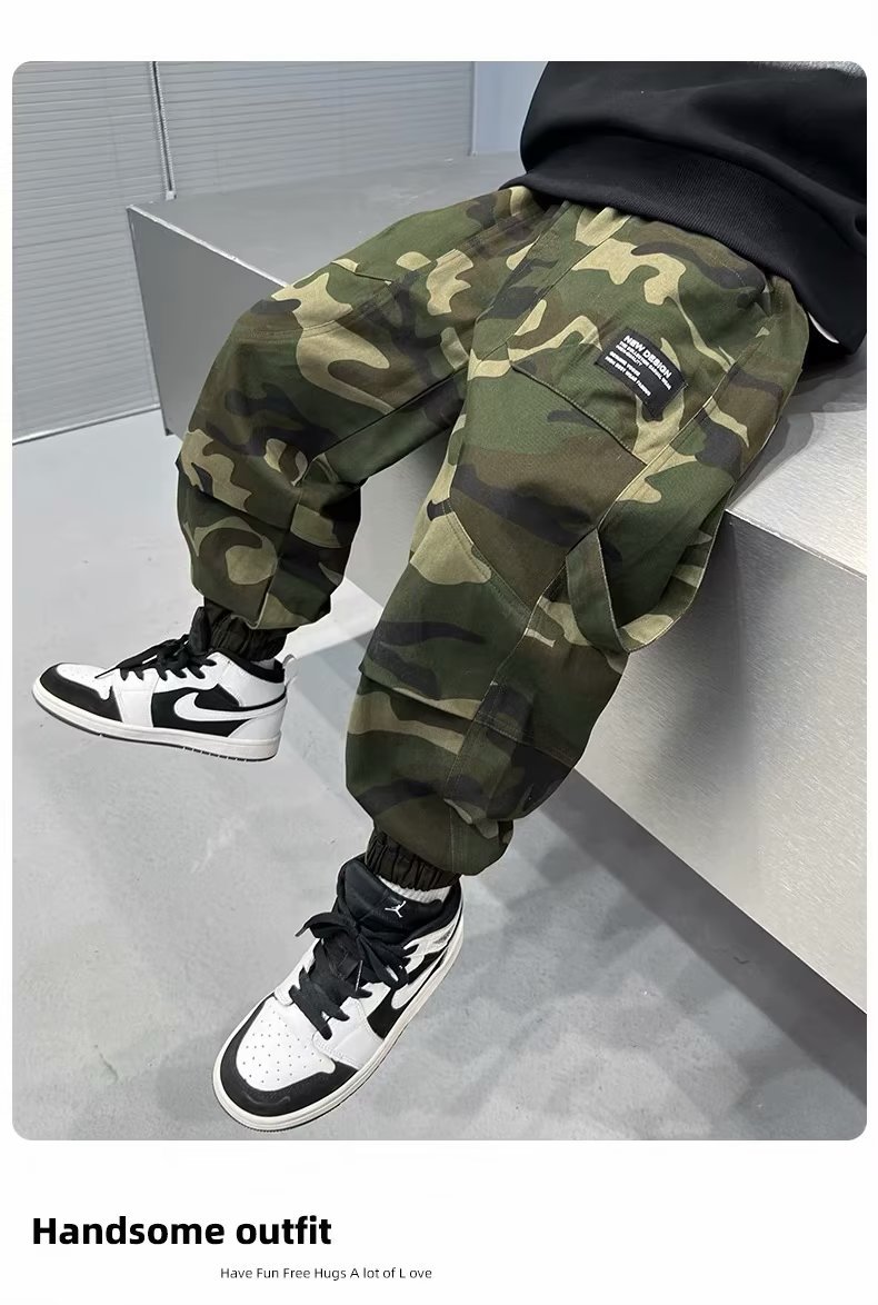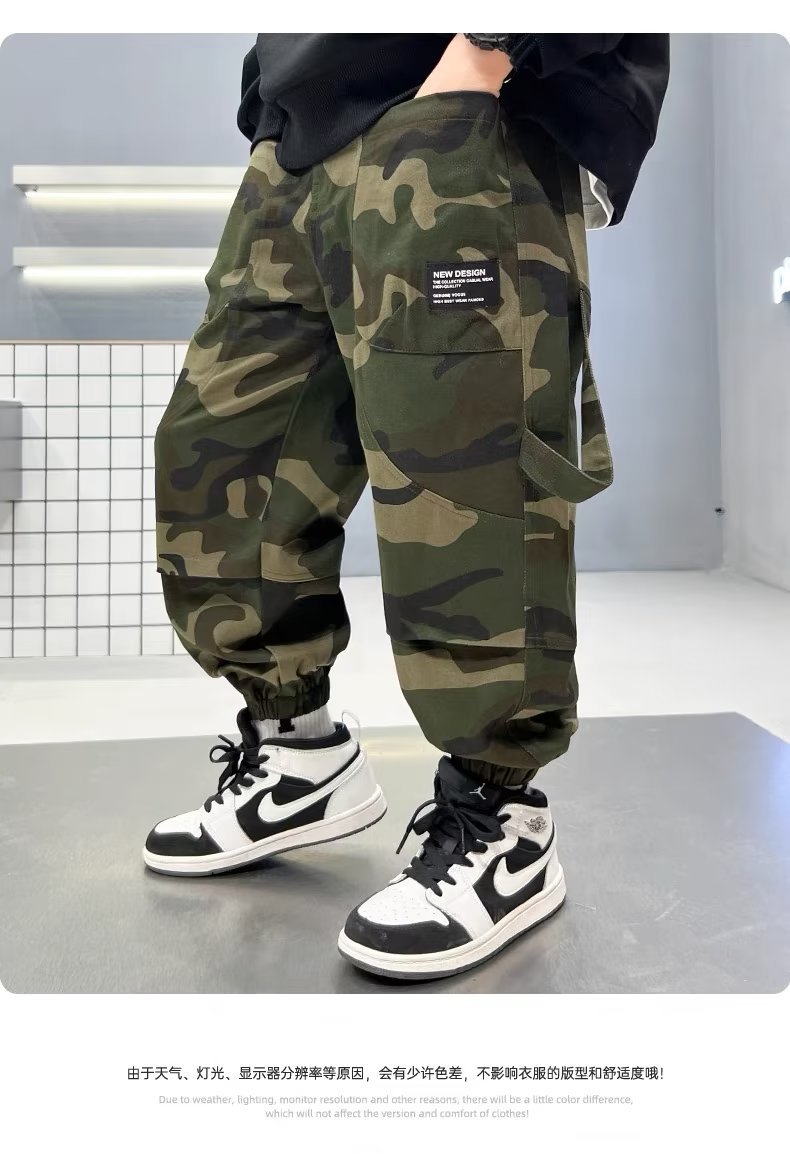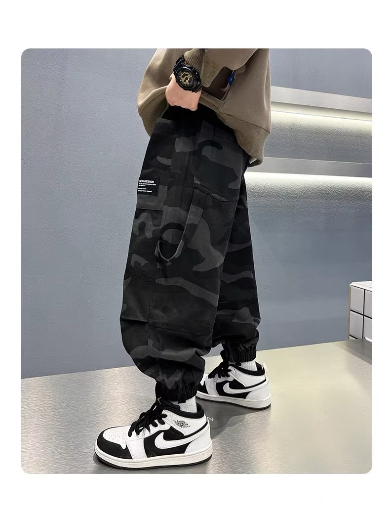 남아 가을 스포츠 위장 바지 2023 가을 새로운 어린이 캐주얼 바위 바지 어린이 모든 경기 발목 바지