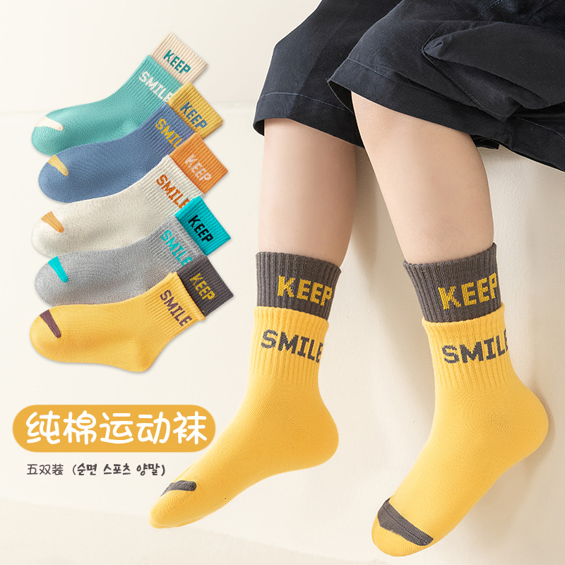 어린이 양말 가을과 겨울 튜브 양말 소년과 소녀 학생의 한국어 버전 어린이 봄과 가을 더블 Luo Kou 대형 어린이 스포츠 양말스토어 가기