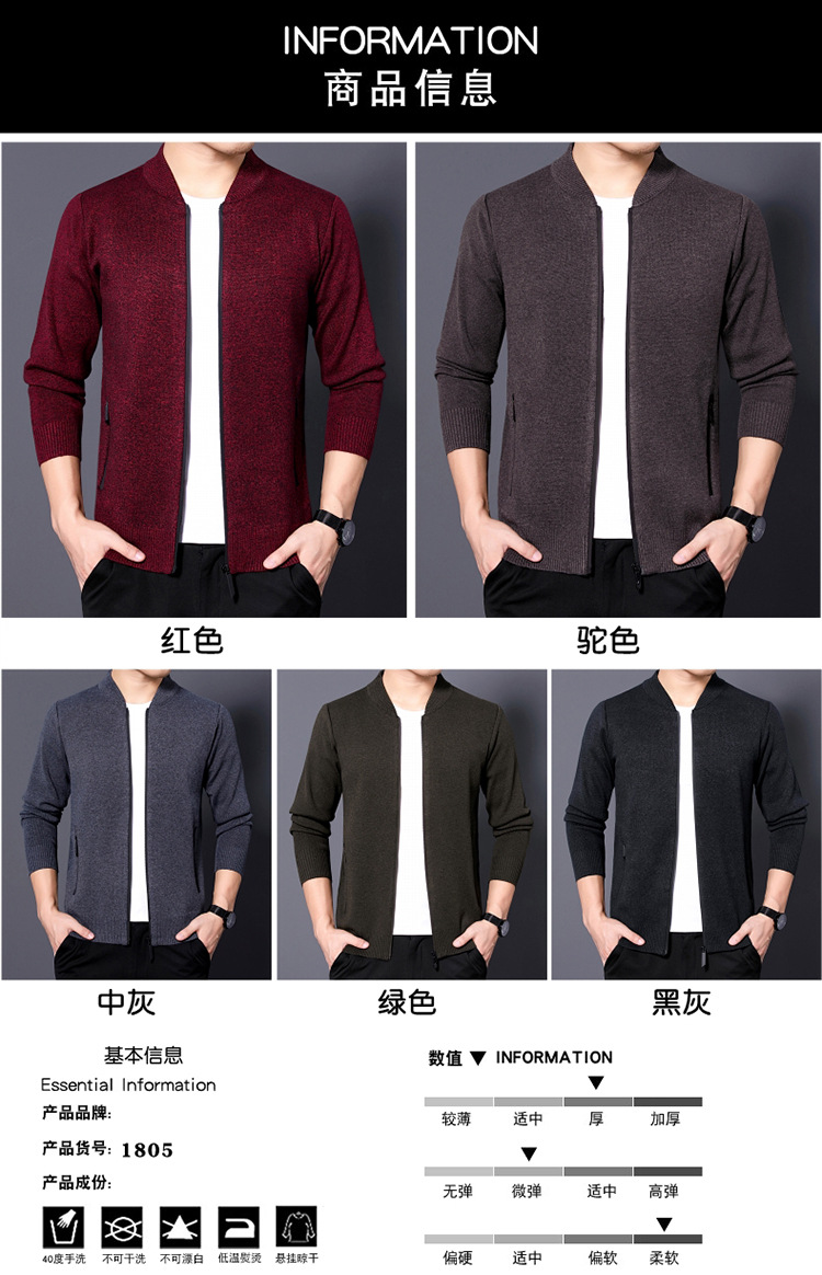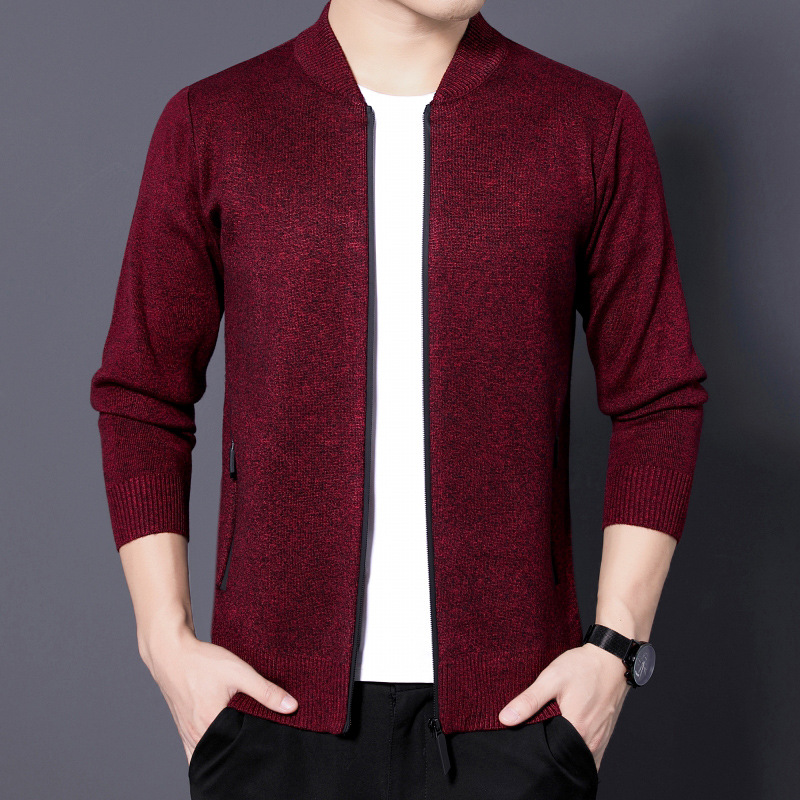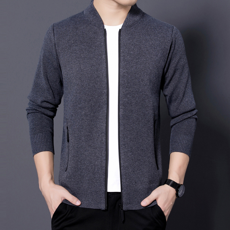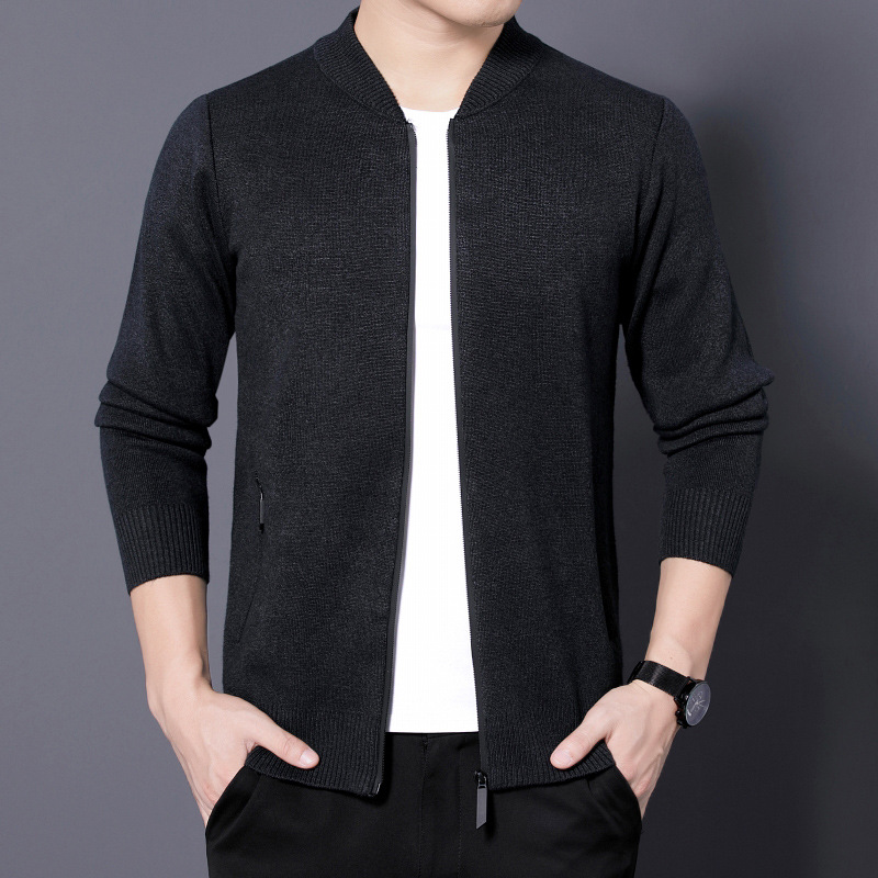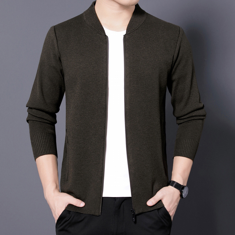 단색 카디건 남성용 봄, 가을과 겨울 착용 지퍼 스웨터 니트웨어 느슨한 캐주얼 두꺼운 재킷 40 세 50스토어 가기