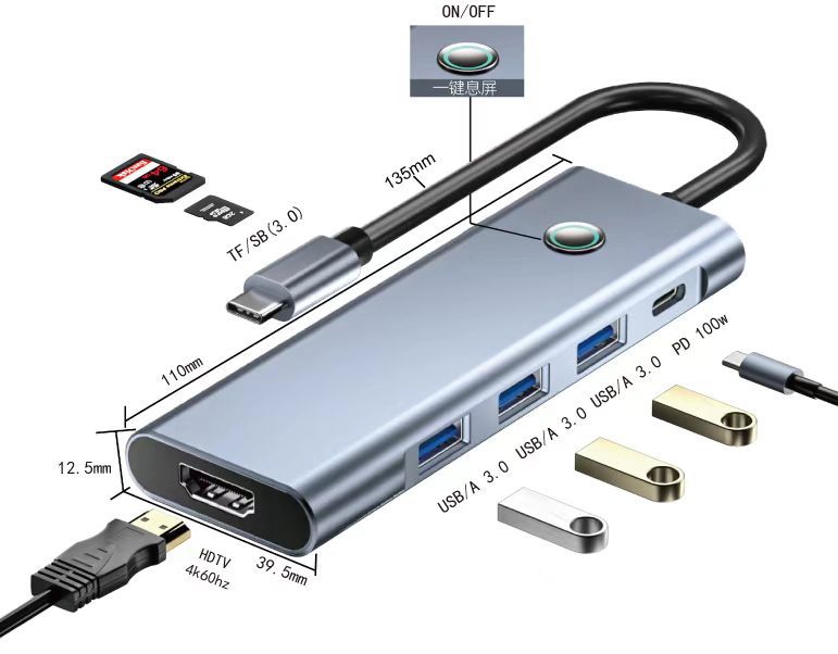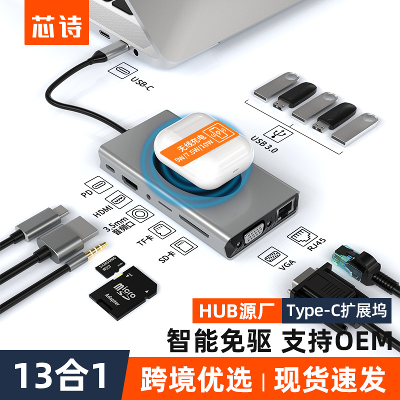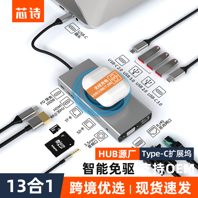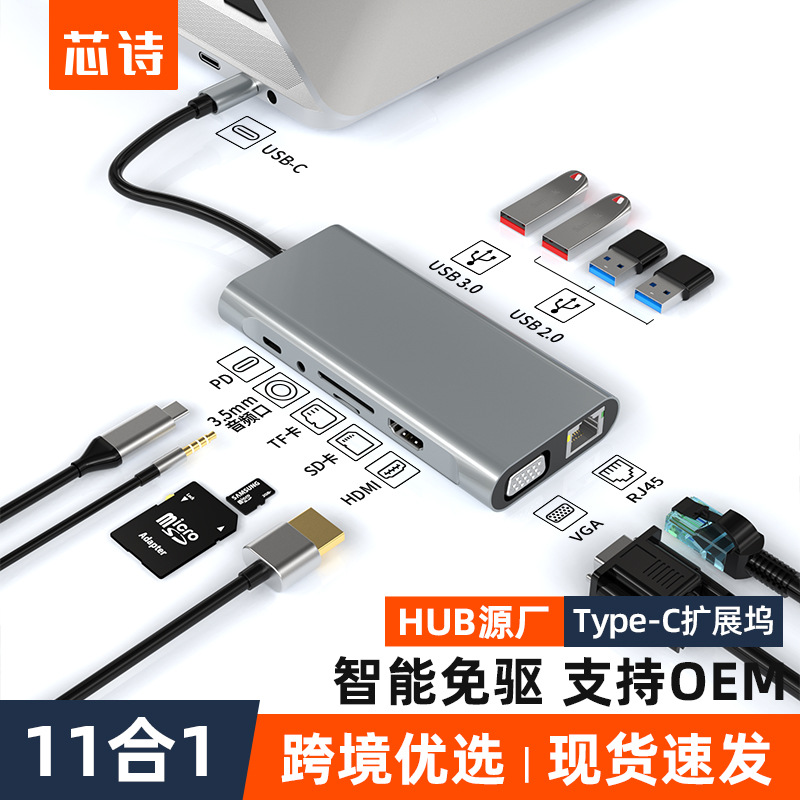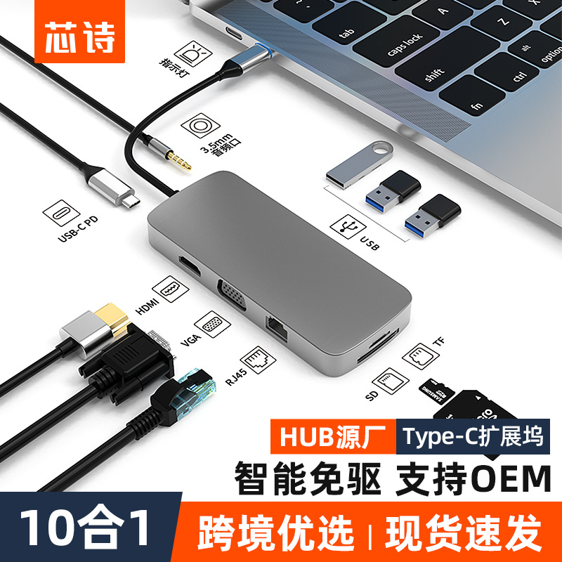 국경 간 폭발 투명 10-in-one 타입-c 도킹 스테이션 USB 허브 컴퓨터 변환기 확장 도크스토어 가기