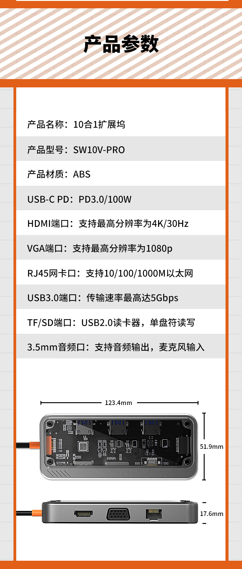 국경 간 폭발 투명 10-in-one 타입-c 도킹 스테이션 USB 허브 컴퓨터 변환기 확장 도크