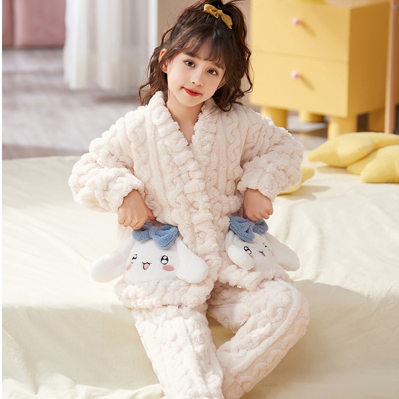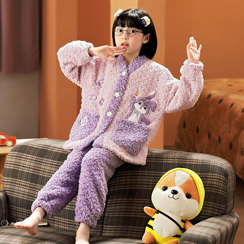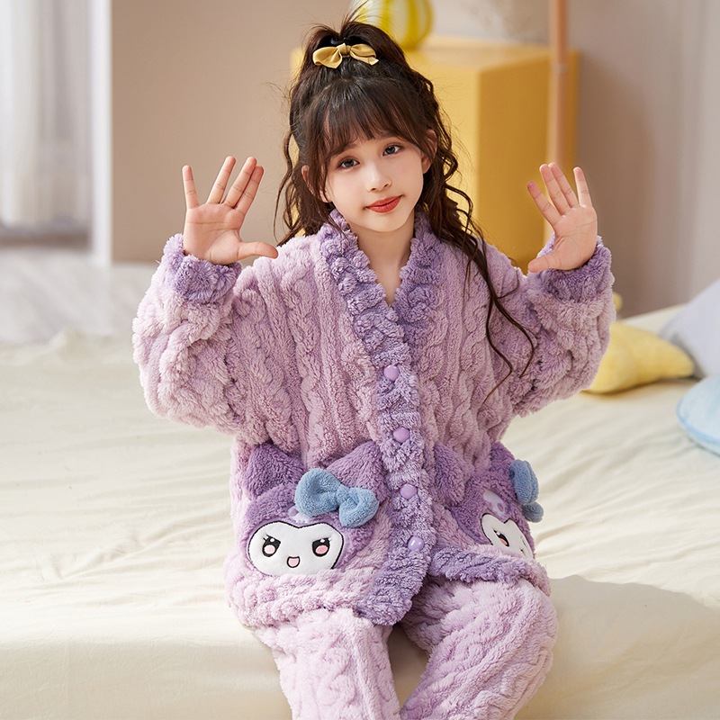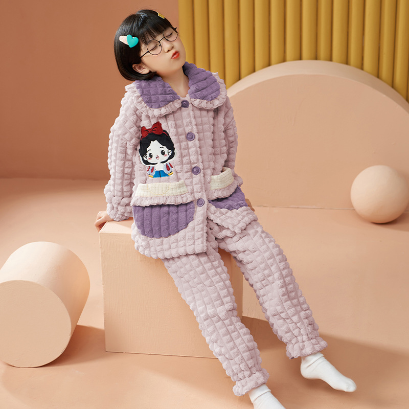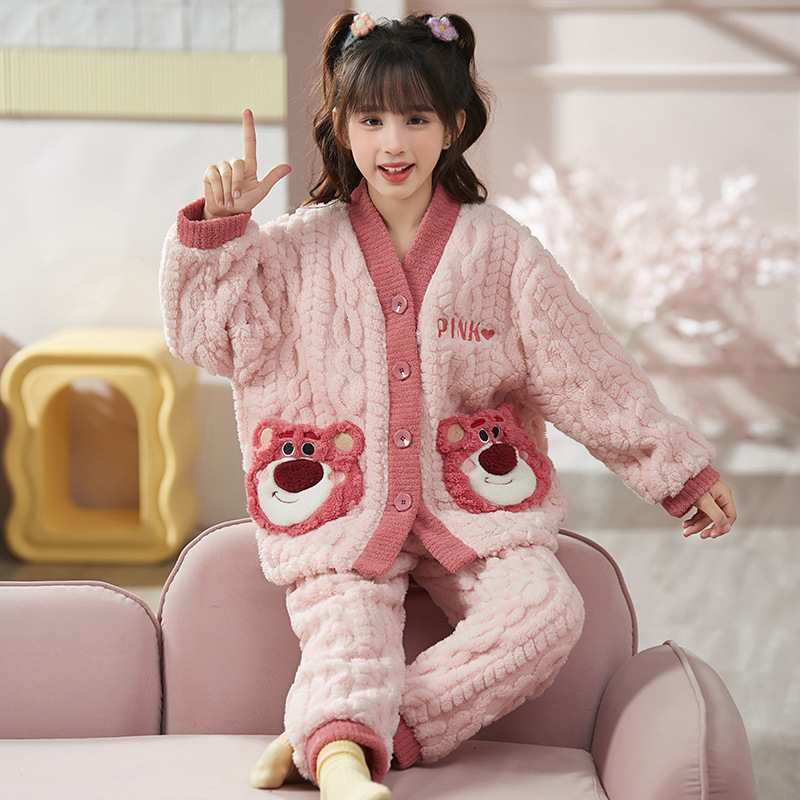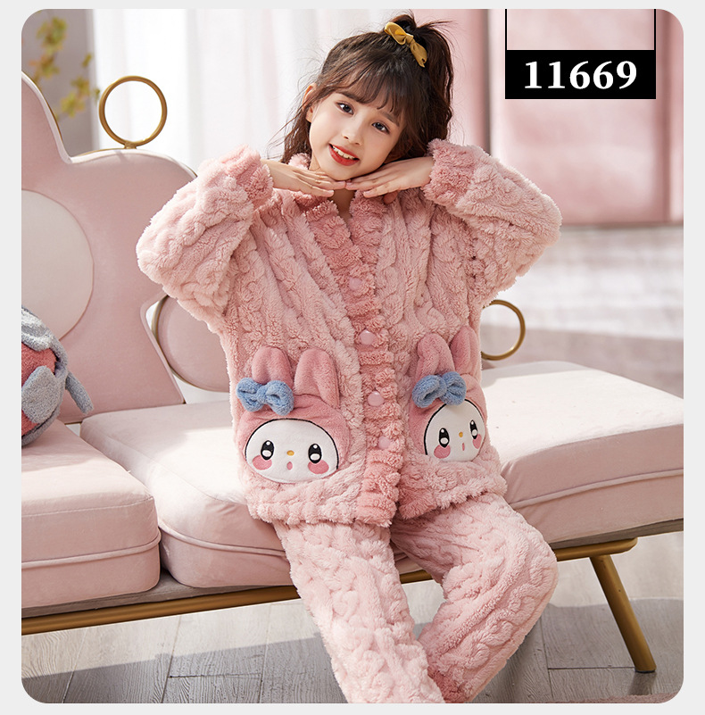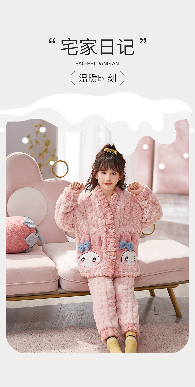 여아 플란넬 잠옷 두꺼운 가을과 겨울 옷 귀여운 멜로디 어린이 따뜻한 산호 양털 가정 옷스토어 가기