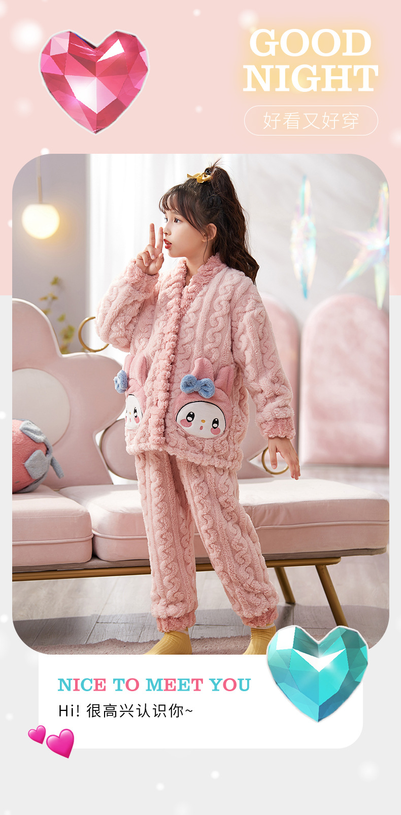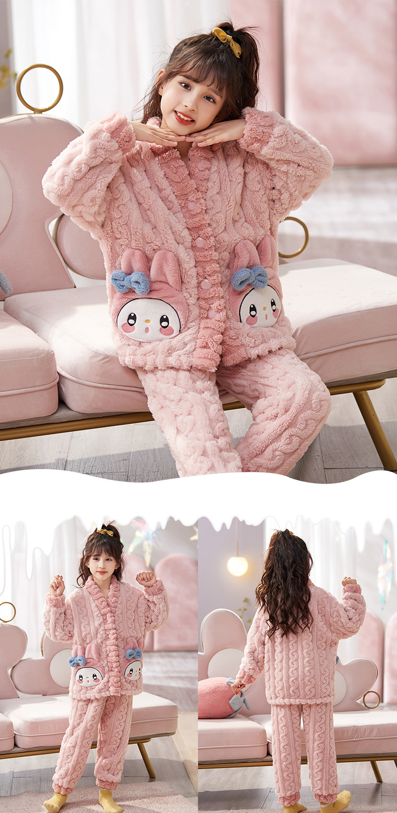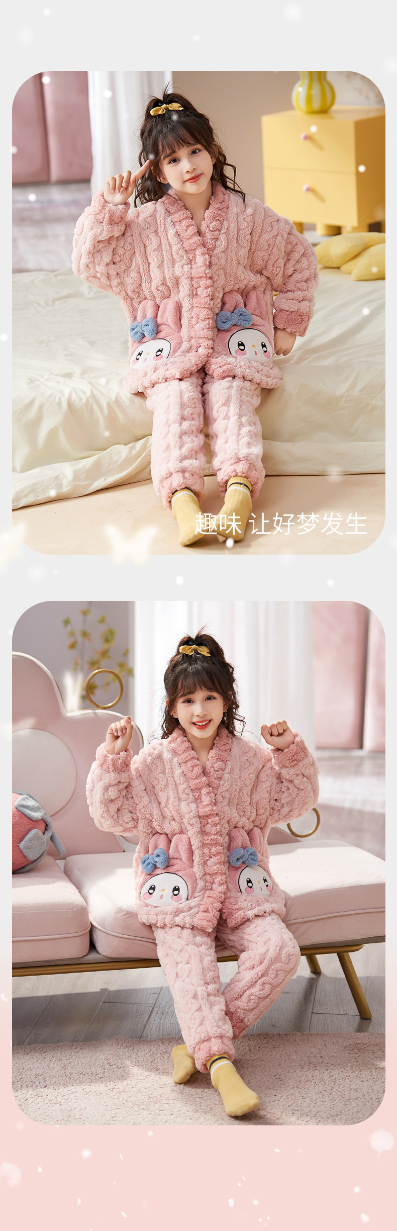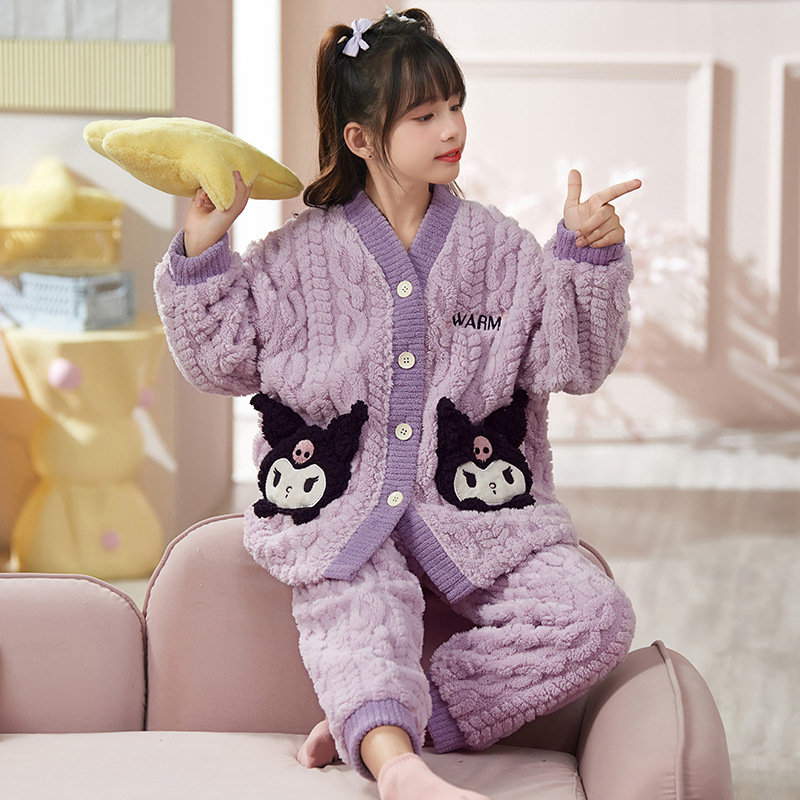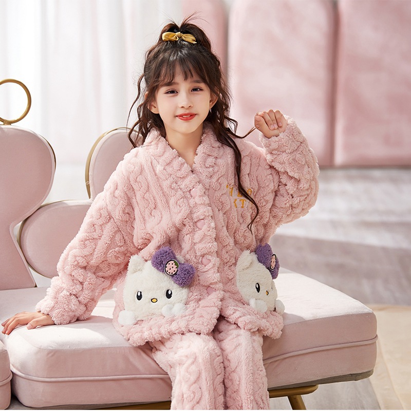 여아 플란넬 잠옷 두꺼운 가을과 겨울 옷 귀여운 멜로디 어린이 따뜻한 산호 양털 가정 옷스토어 가기