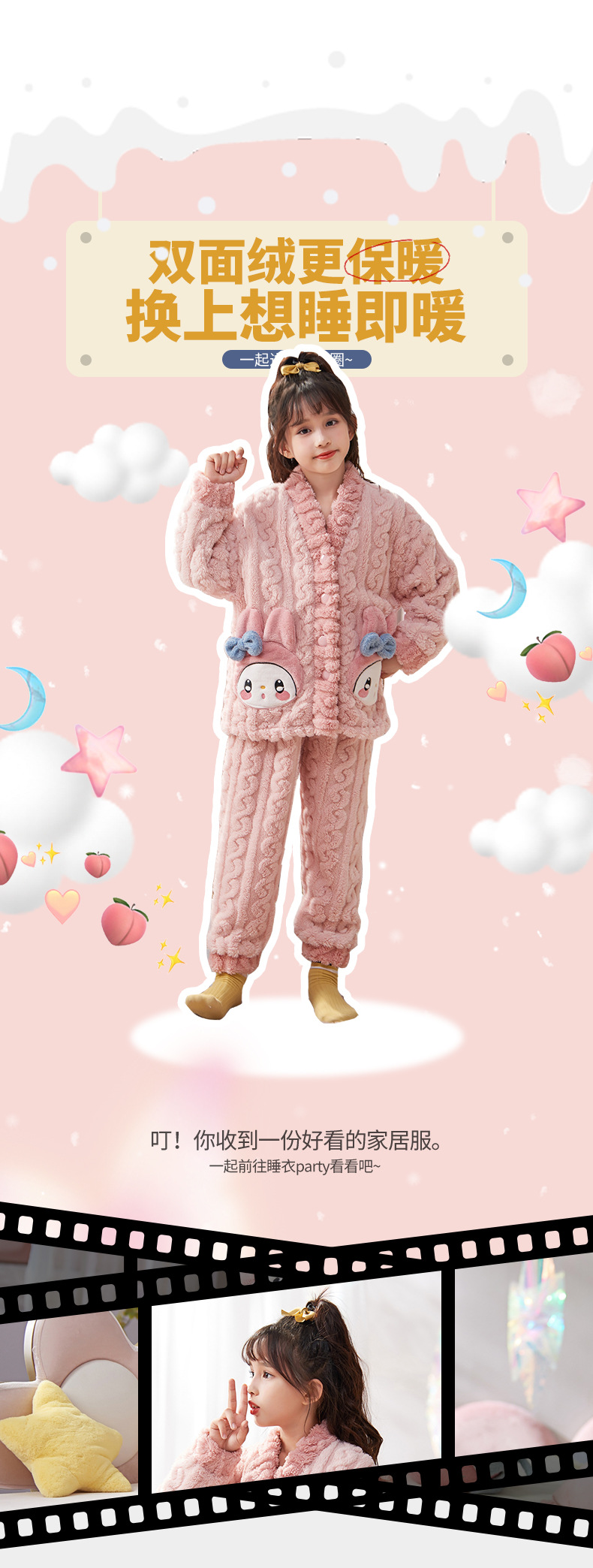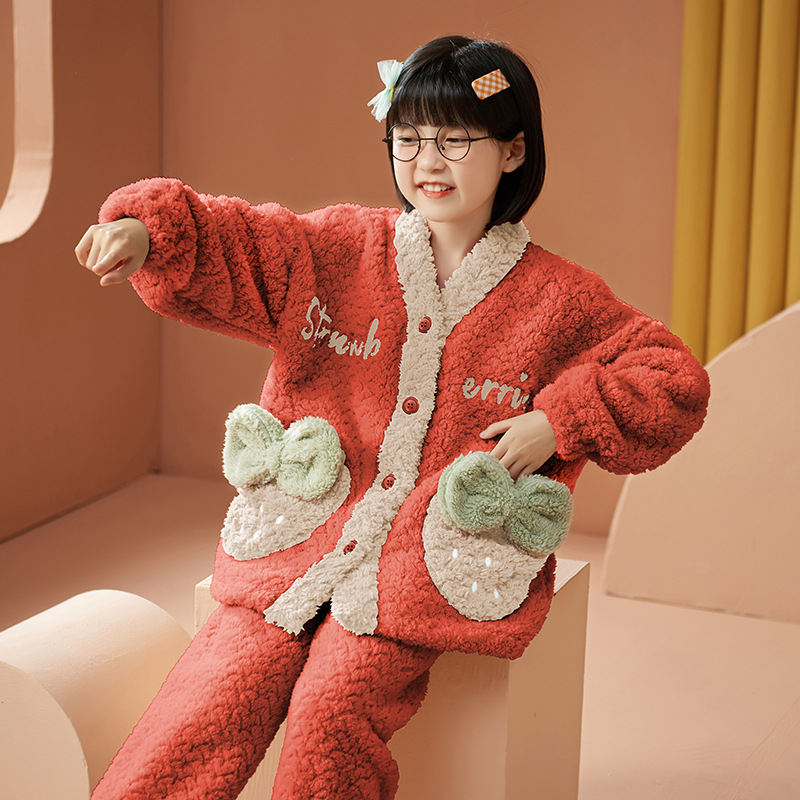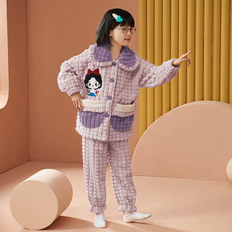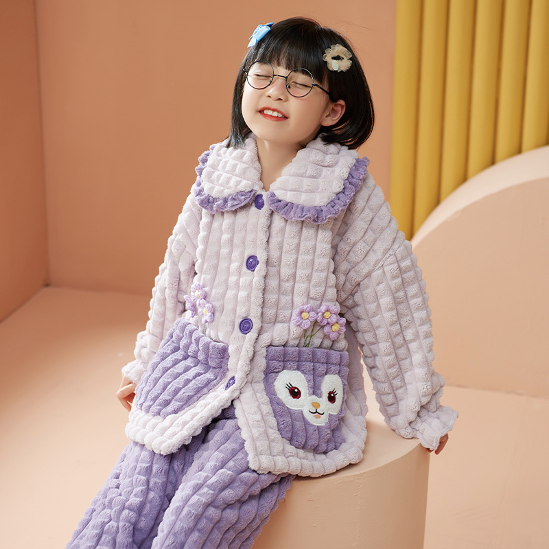 여아 플란넬 잠옷 두꺼운 가을과 겨울 옷 귀여운 멜로디 어린이 따뜻한 산호 양털 가정 옷