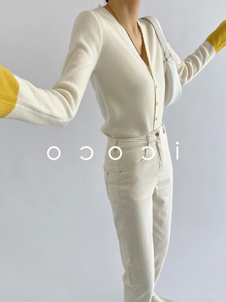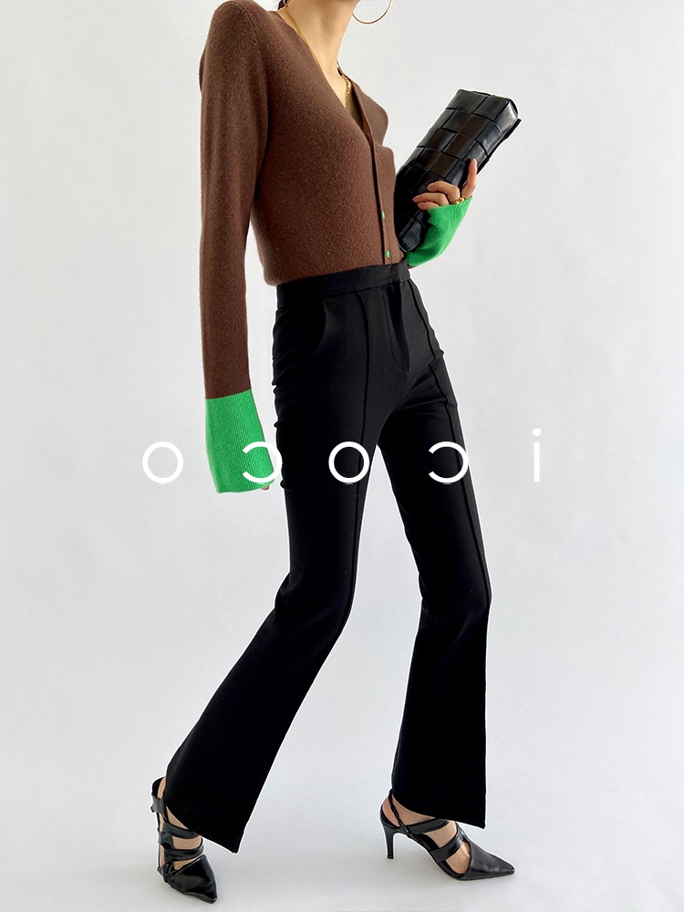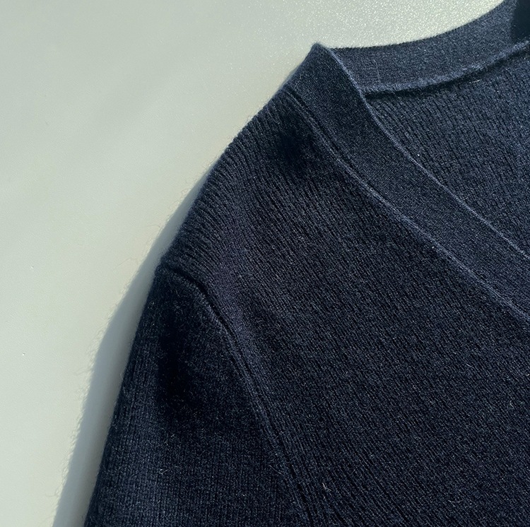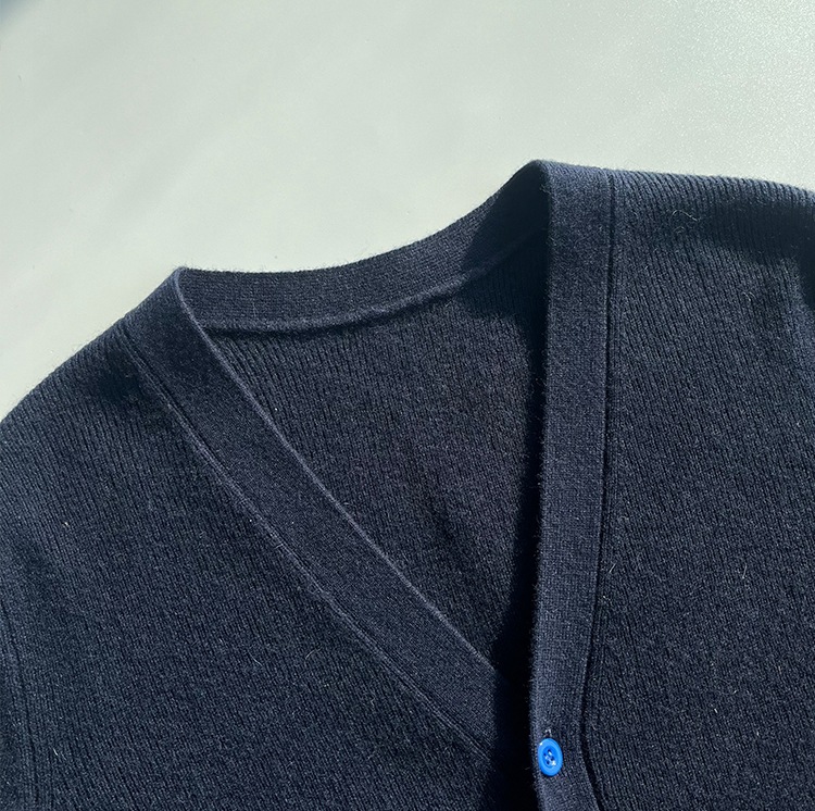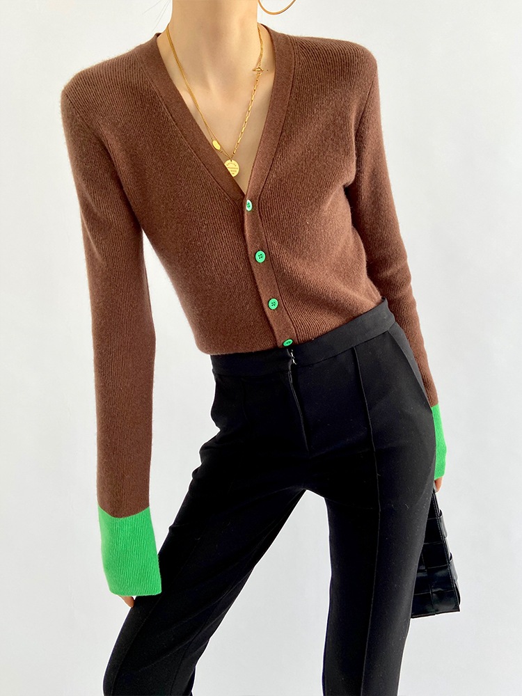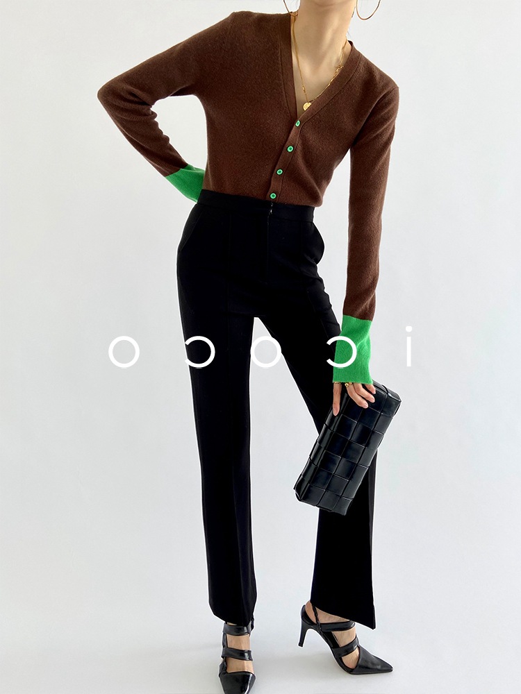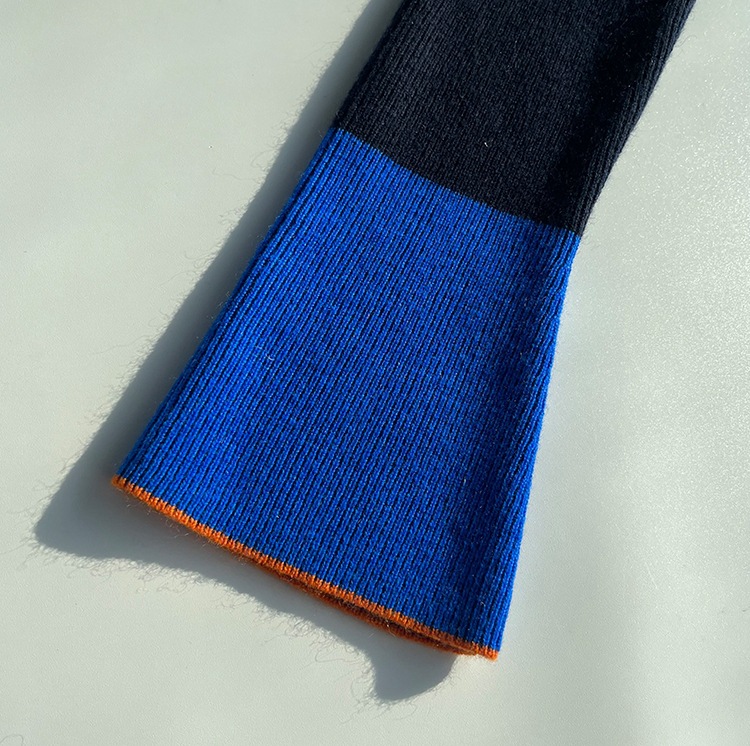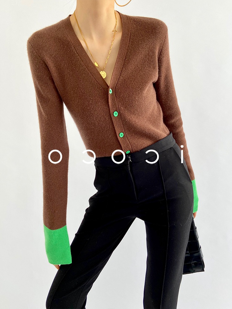 프렌치 레트로 클라인 블루 대비 컬러 니트 카디건 여성 2023 가을과 겨울 새로운 슬림핏 V-넥 플레어 슬리브 탑스토어 가기