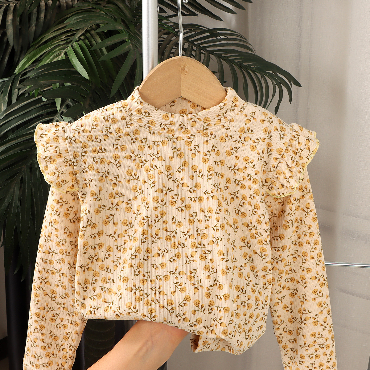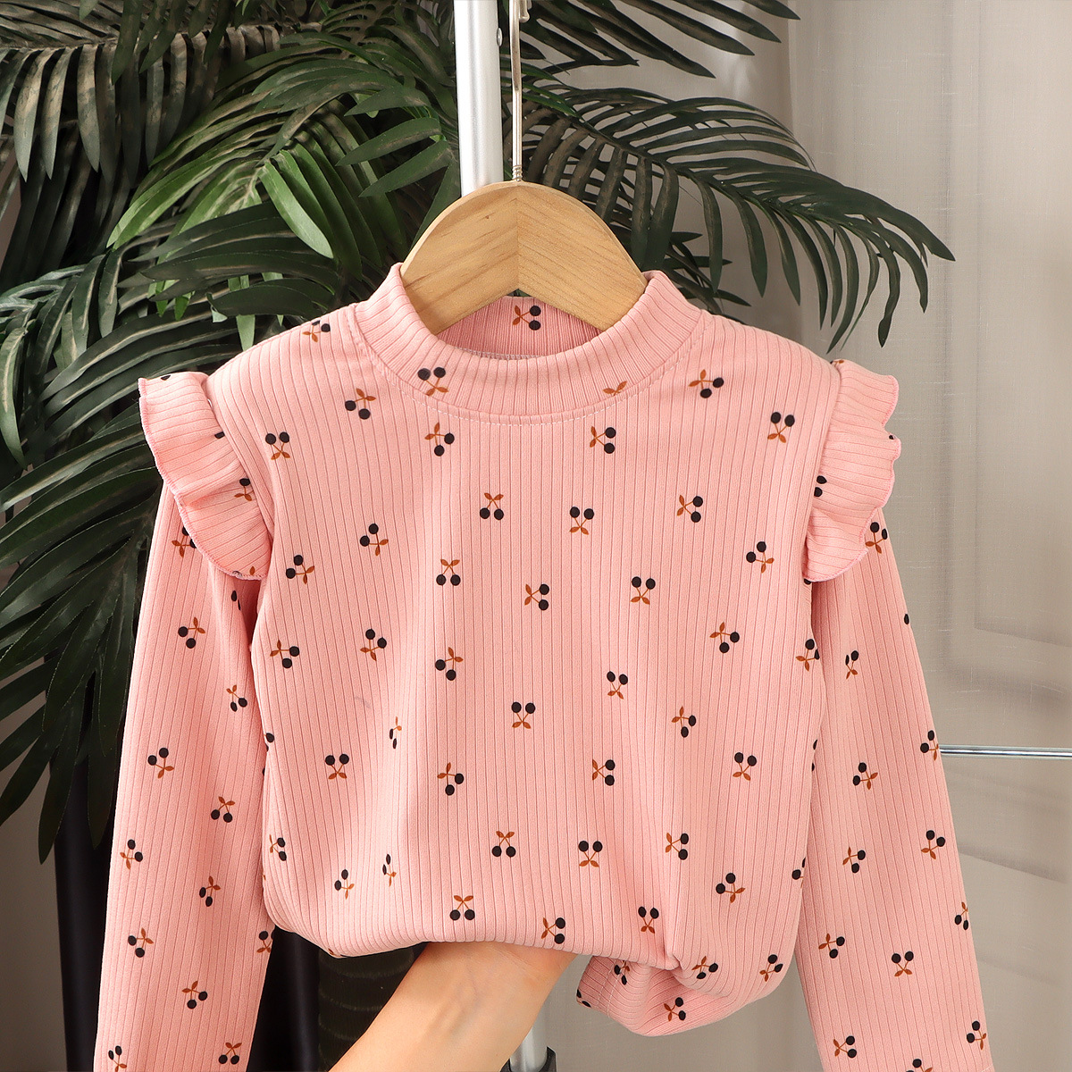 아동용 서양식 한국식 긴팔 올매치 프린트 베이비 가을 여성용 보물 소매 신상 여아 플로럴 탑 베이스 레이어 셔츠
