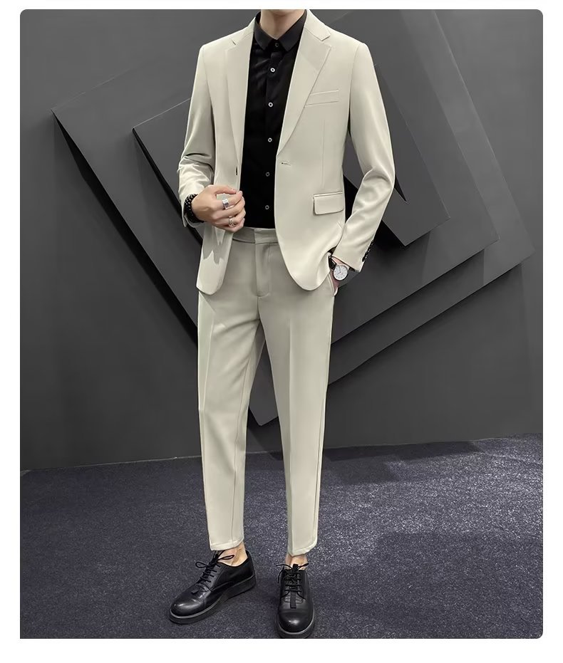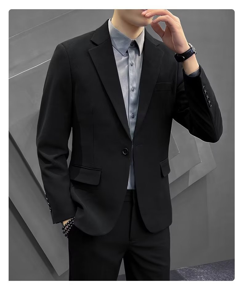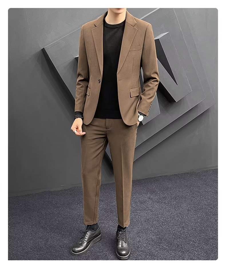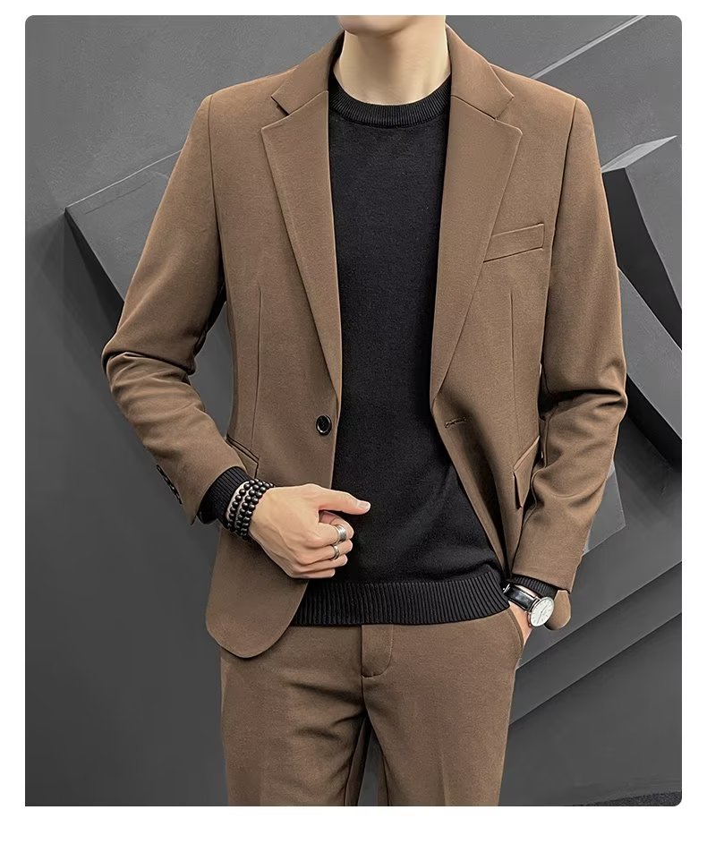 봄과 가을 캐주얼 세트 남자의 한국 스타일 슬림핏 스몰 세트 재킷 유행 하이 엔드 센스 트렌디 다크 브라운 탑