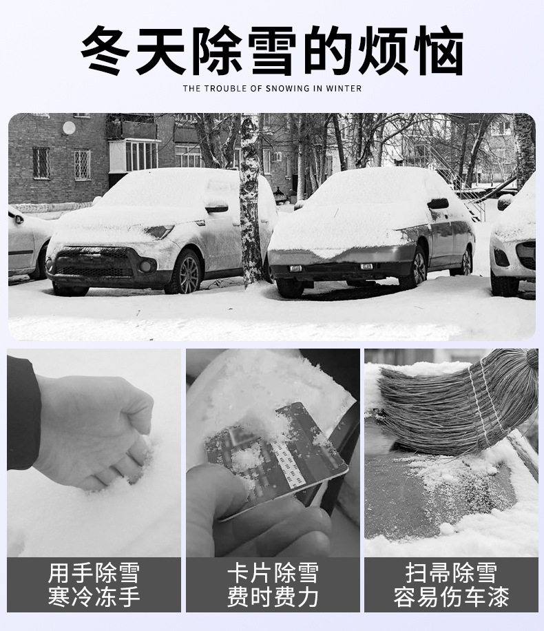 ●除了可以去除汽车上的雪和霜之外,还可以扫刷电动车,自行车以及被大雪被大雪覆盖的房子,玻璃门窗等。
