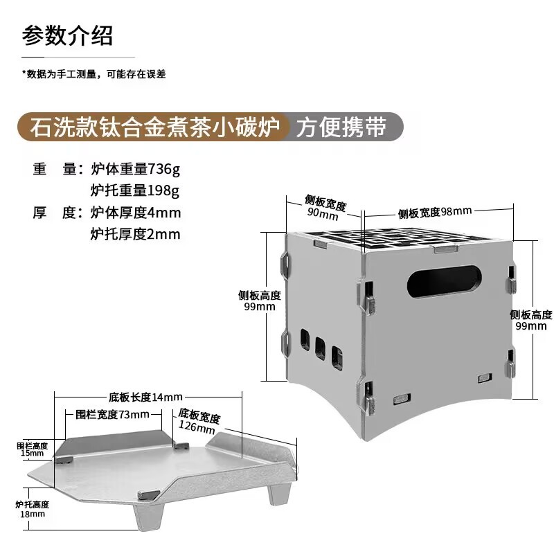 야외 석재 세척 티타늄 합금 이동식 차 요리 작은 숯 스토브 휴대용 간단한 스토브 캠핑 다기능 숯 스토브