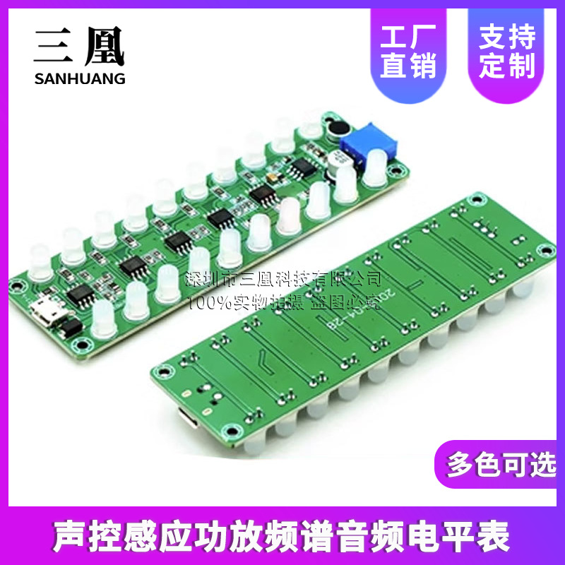 声音越大,LED由下至上点亮的越多,随着声音的起伏,LED也会随着音乐跳跃,特别是播放DJ的时候更是有趣。