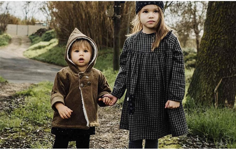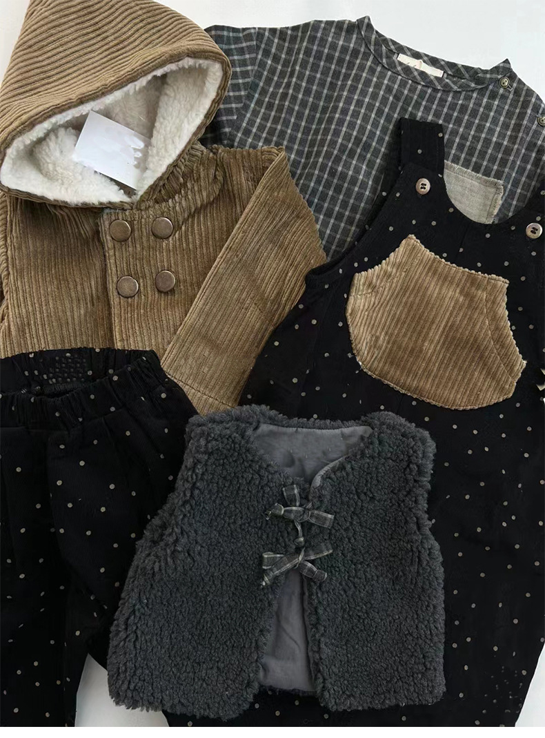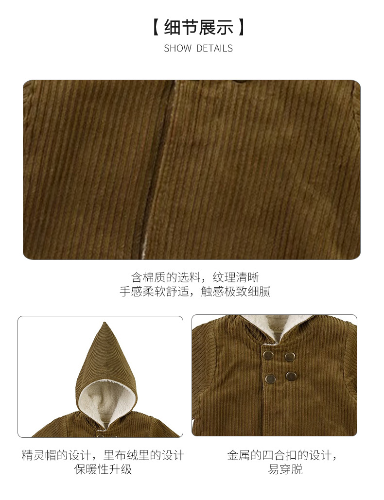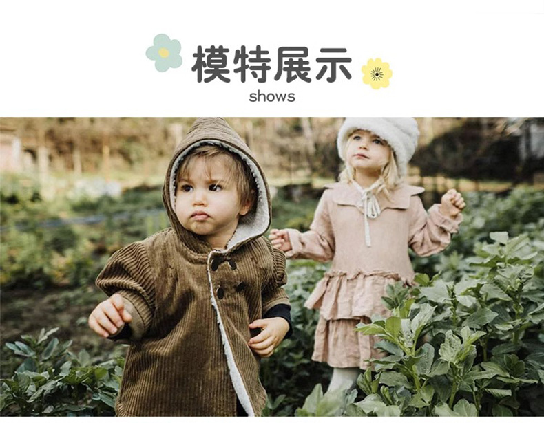 어린이 복고풍 따뜻한 의류 기모 2023 유럽과 미국 가을과 겨울 아기 후드 코듀로이 코트스토어 가기