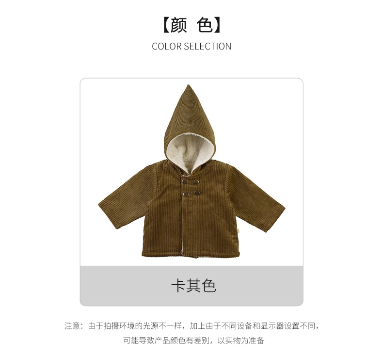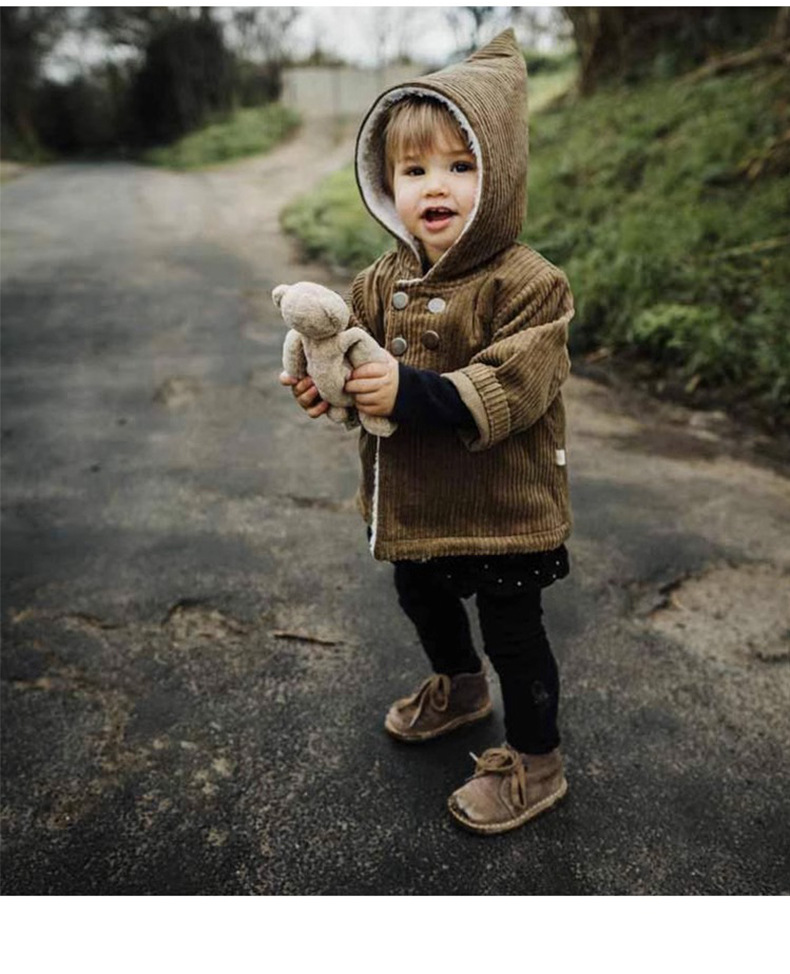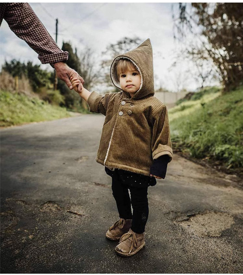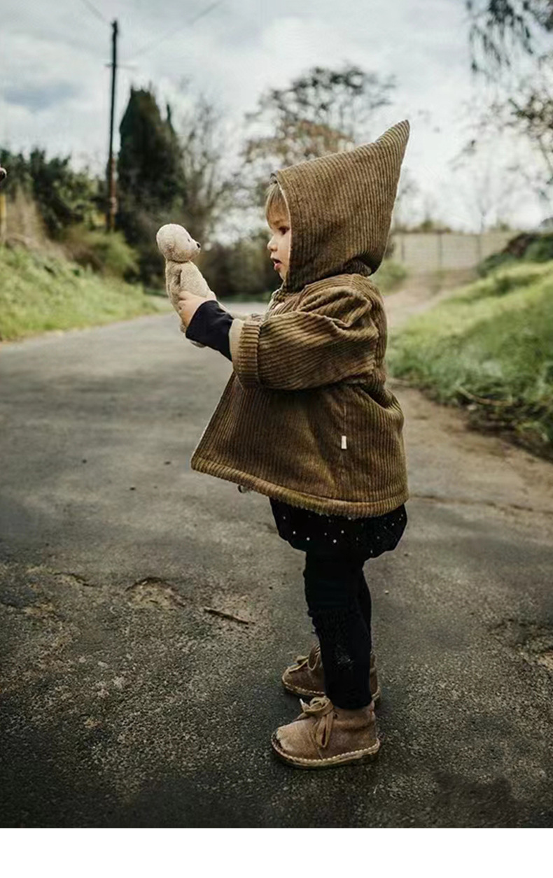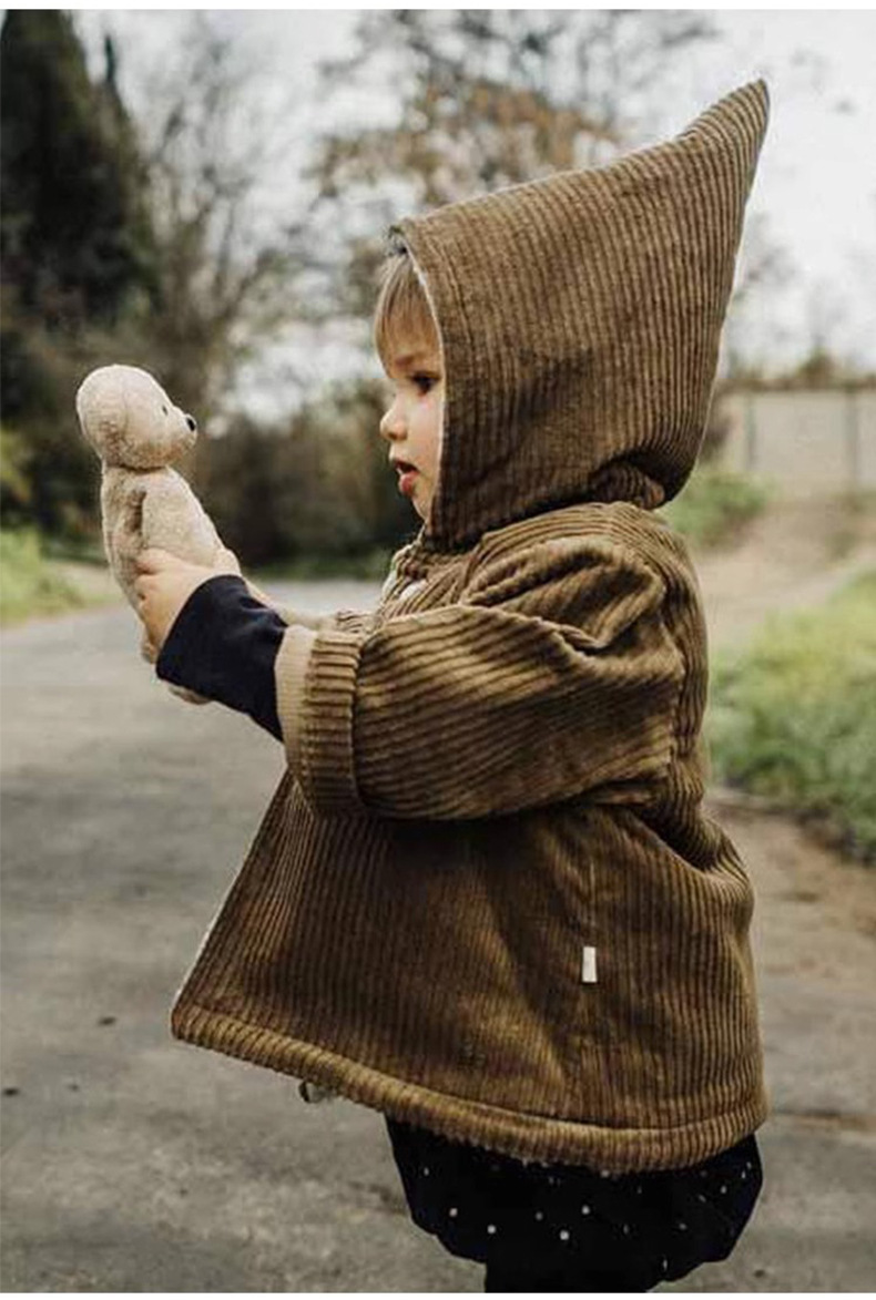 어린이 복고풍 따뜻한 의류 기모 2023 유럽과 미국 가을과 겨울 아기 후드 코듀로이 코트