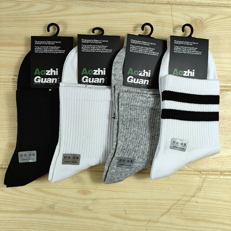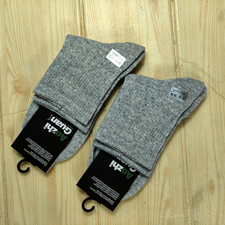 남성용 더블 바늘 중반 송아지면 양말 가을과 겨울 두꺼운 캐주얼 통기성 순수 컬러 양말 비즈니스 블랙 화이트 그레이 미드 웨이스트 양말스토어 가기