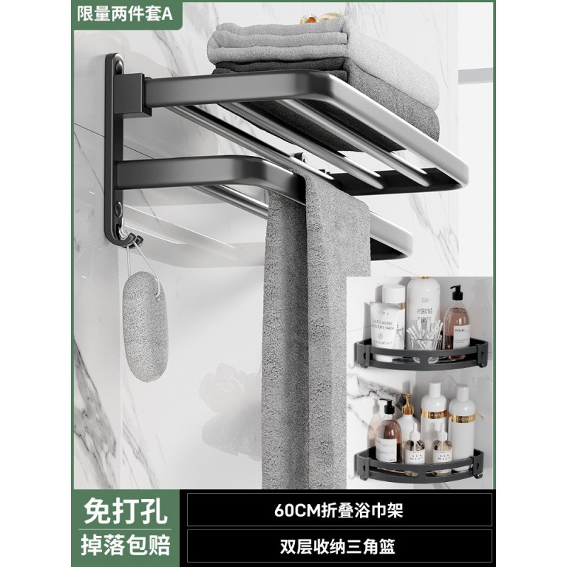 화장실 수납 랙 펀치없는 공간 알루미늄 수건 걸이 화장실 욕실 수건 걸이 호텔 욕실 하드웨어 펜던트스토어 가기