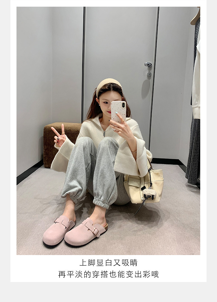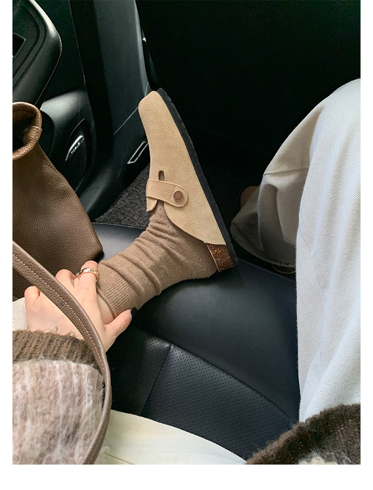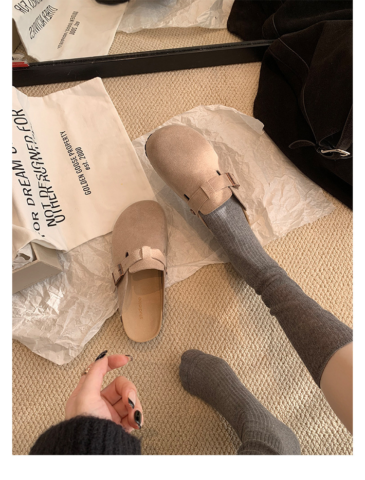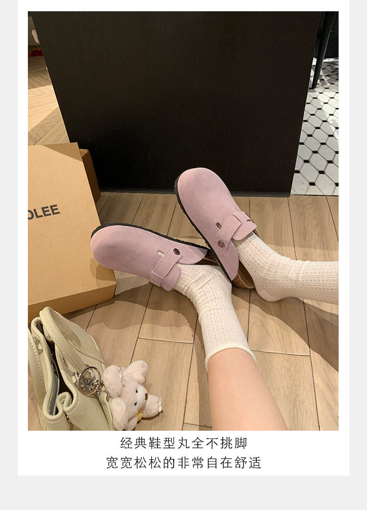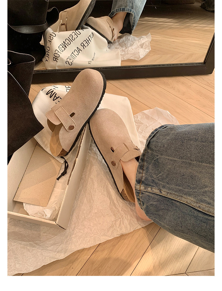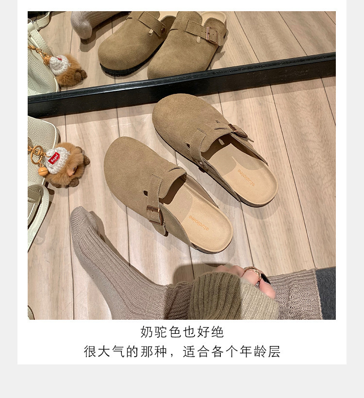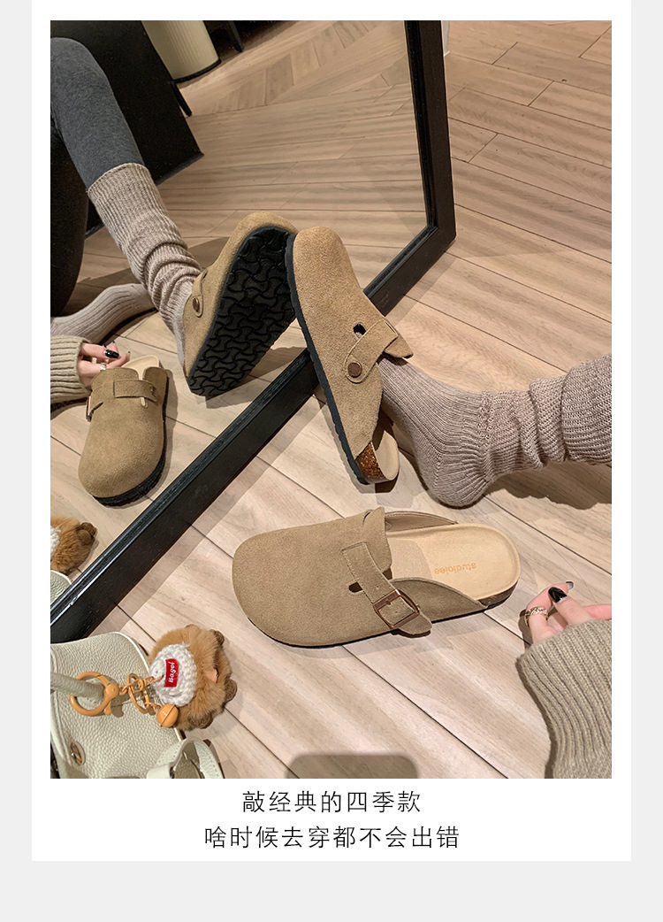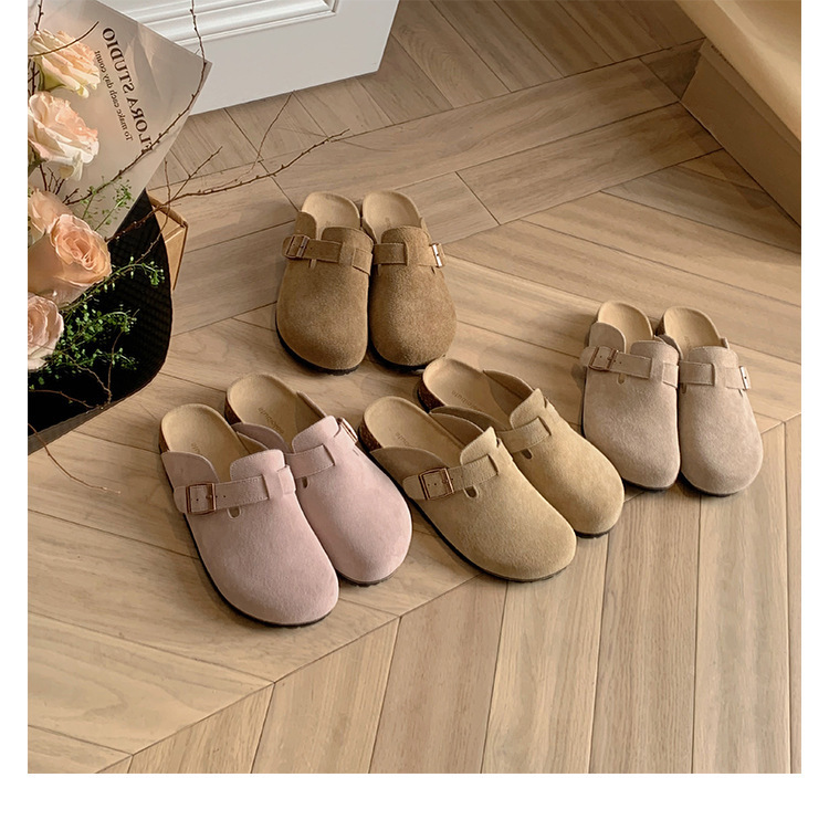 정품 가죽 버켄 신발 두꺼운 밑창 하프 슬립 온 여성 연인 캐주얼 게으른 슬리퍼 빈티지 코르크 버켄 신발 슬립 온스토어 가기