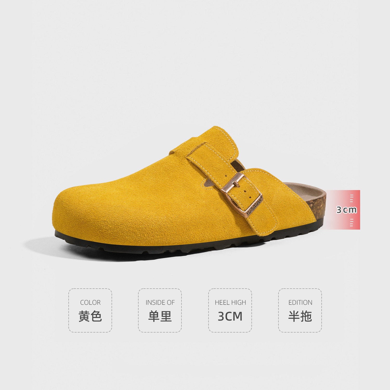 정품 가죽 버켄 신발 두꺼운 밑창 하프 슬립 온 여성 연인 캐주얼 게으른 슬리퍼 빈티지 코르크 버켄 신발 슬립 온
