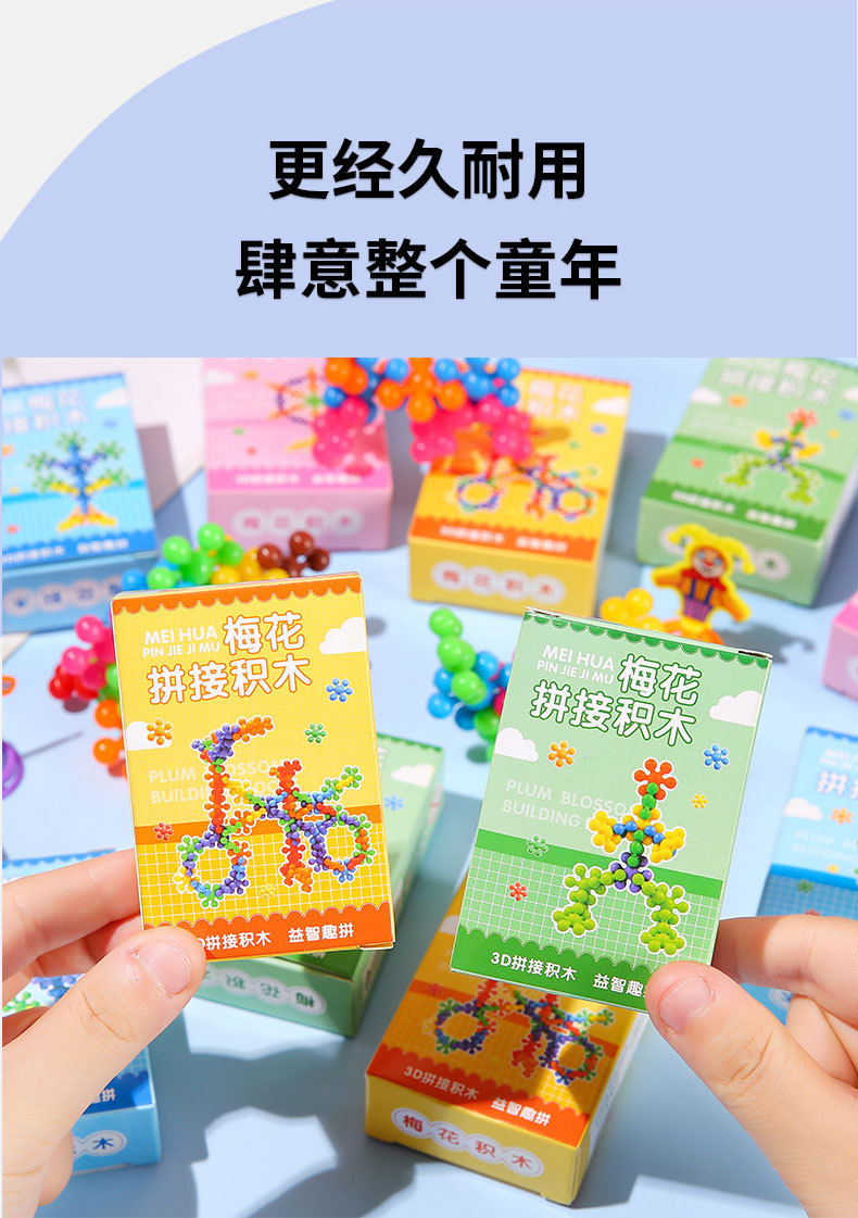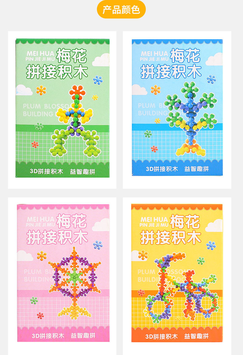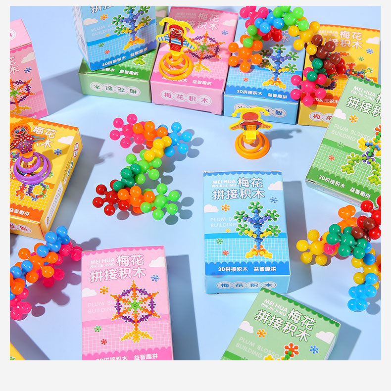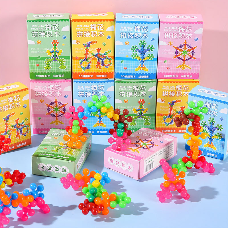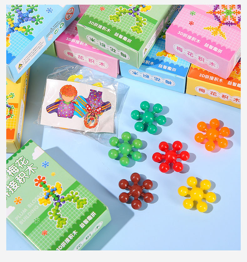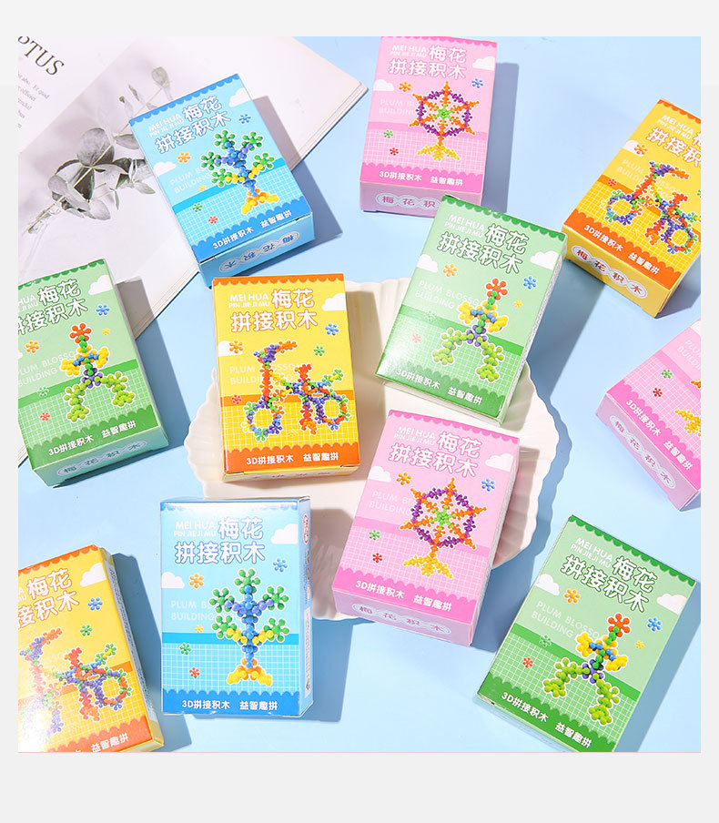 어린이 매화 빌딩 블록 유치원 DIY 장난감 선물을위한 재미있는 박스형 3D 입체 회전 눈송이 조각스토어 가기