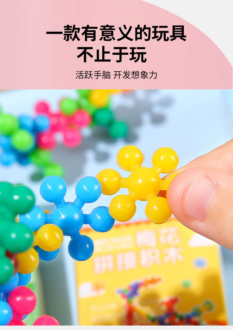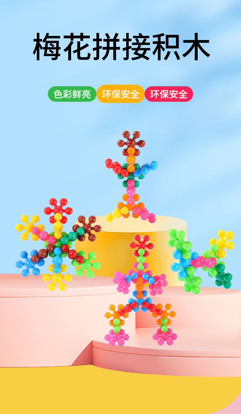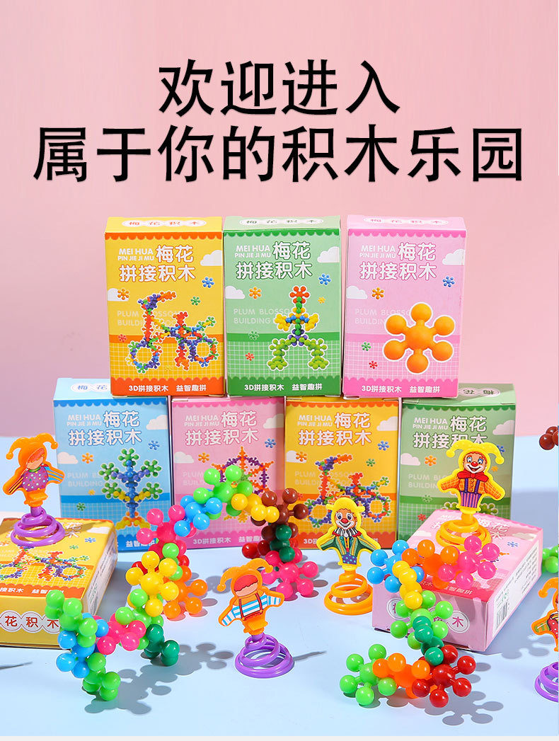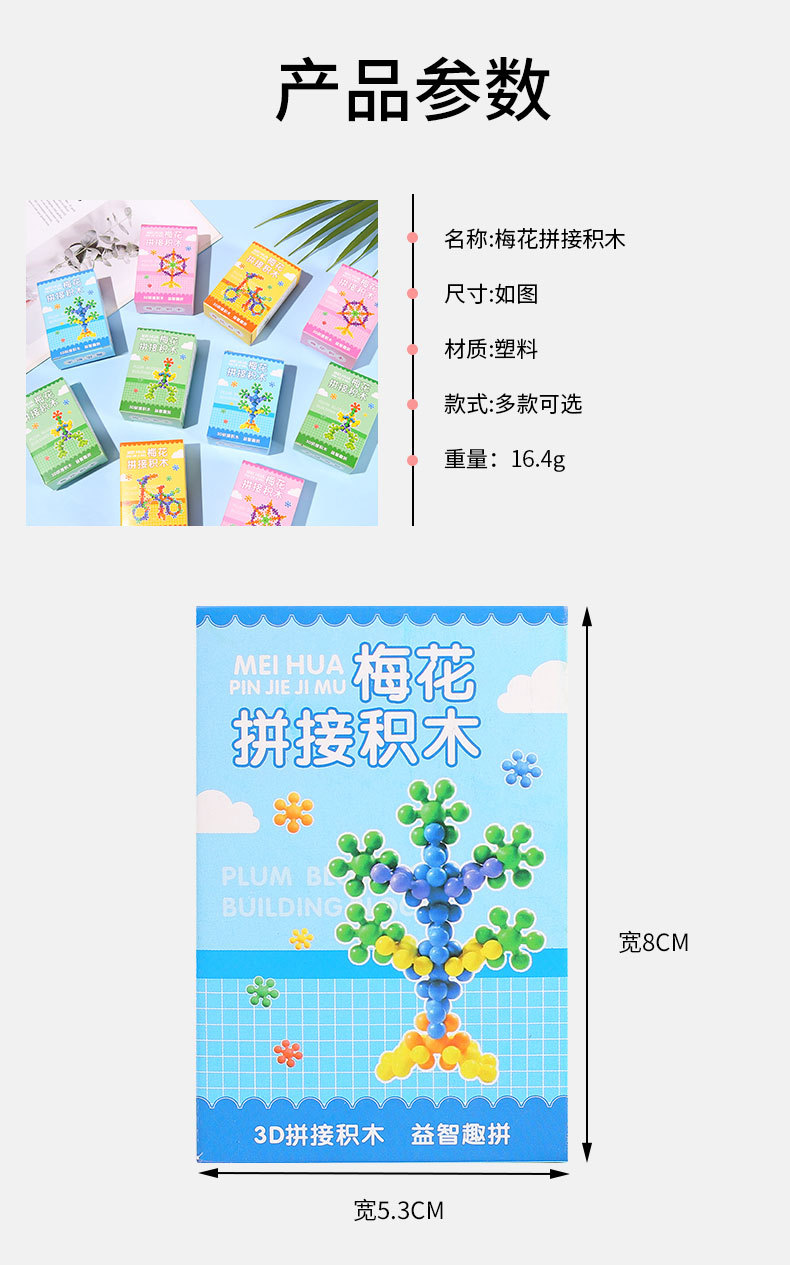 어린이 매화 빌딩 블록 유치원 DIY 장난감 선물을위한 재미있는 박스형 3D 입체 회전 눈송이 조각스토어 가기