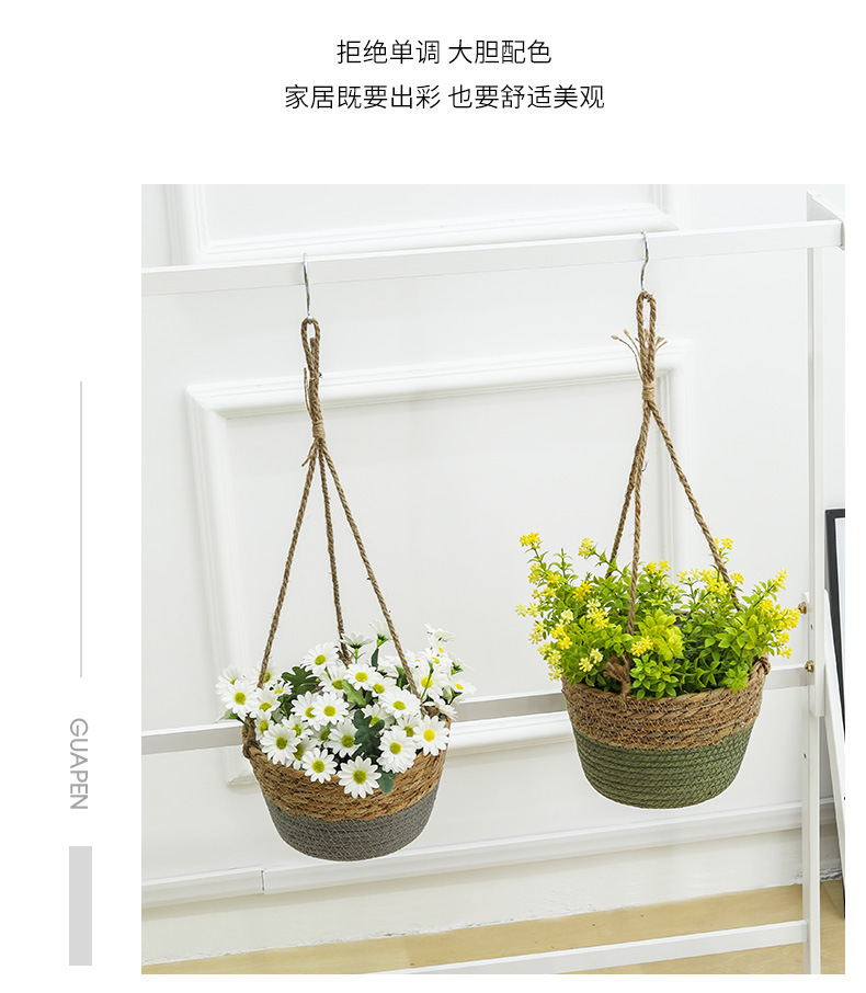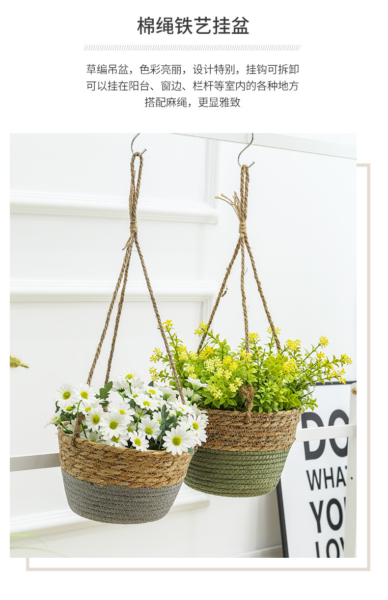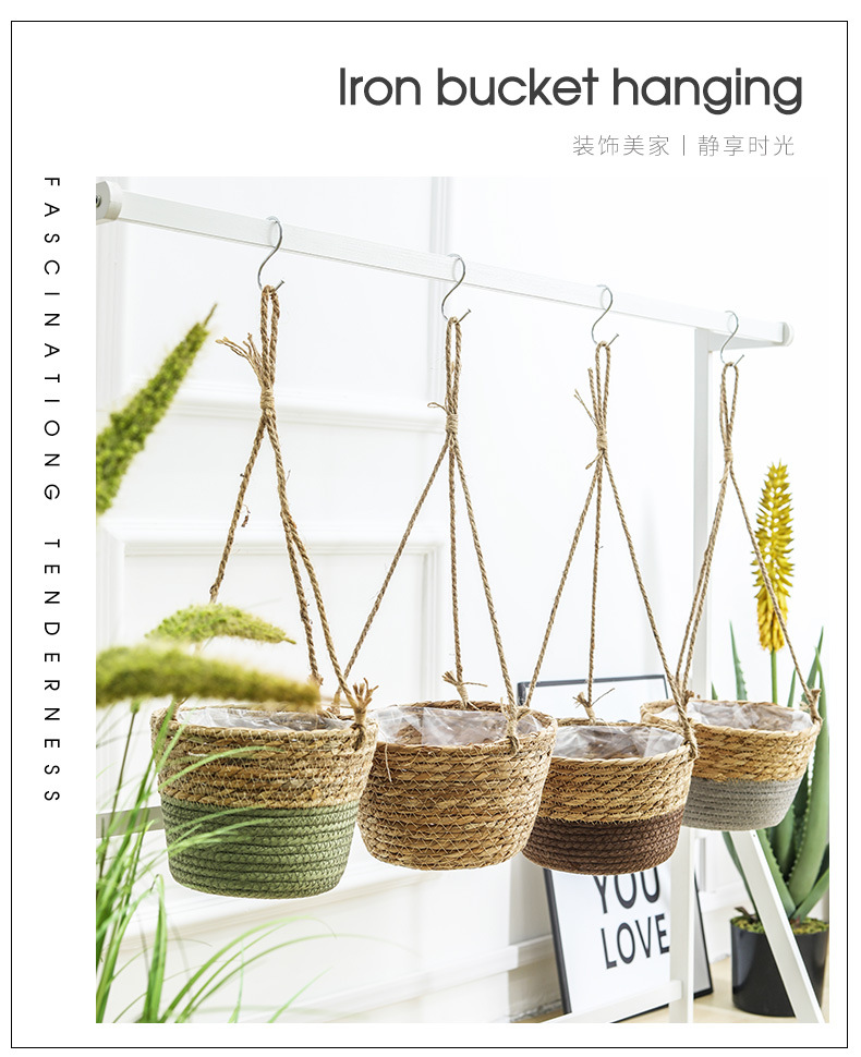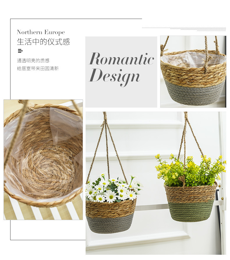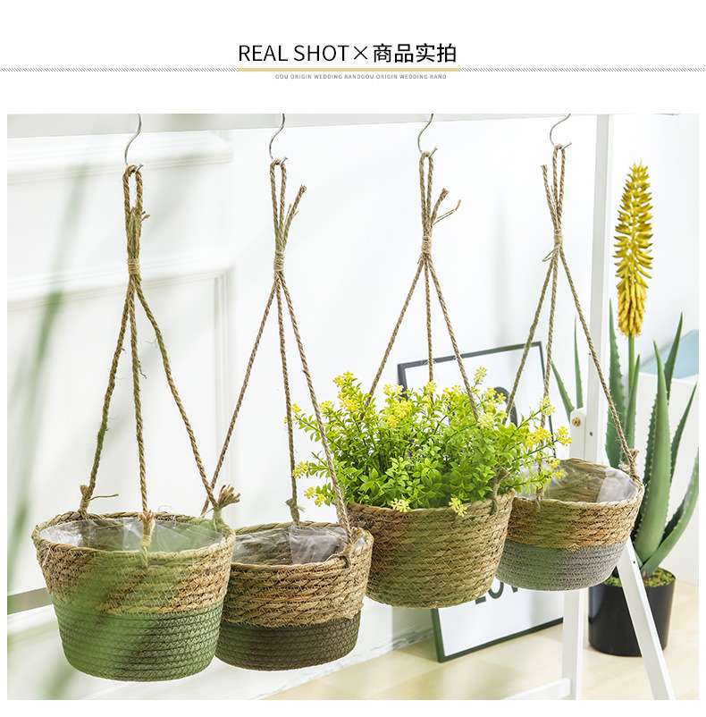 국경을 넘는 풀짚 화분, 가정용 꽃바구니, 발코니 장식용 화분, 녹색 식물 재배용 걸이형 화분, 드롭형 화분