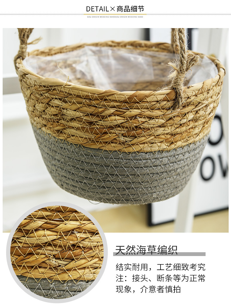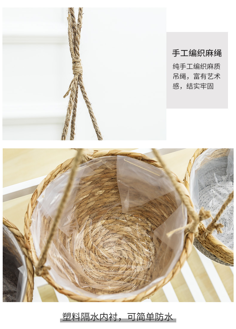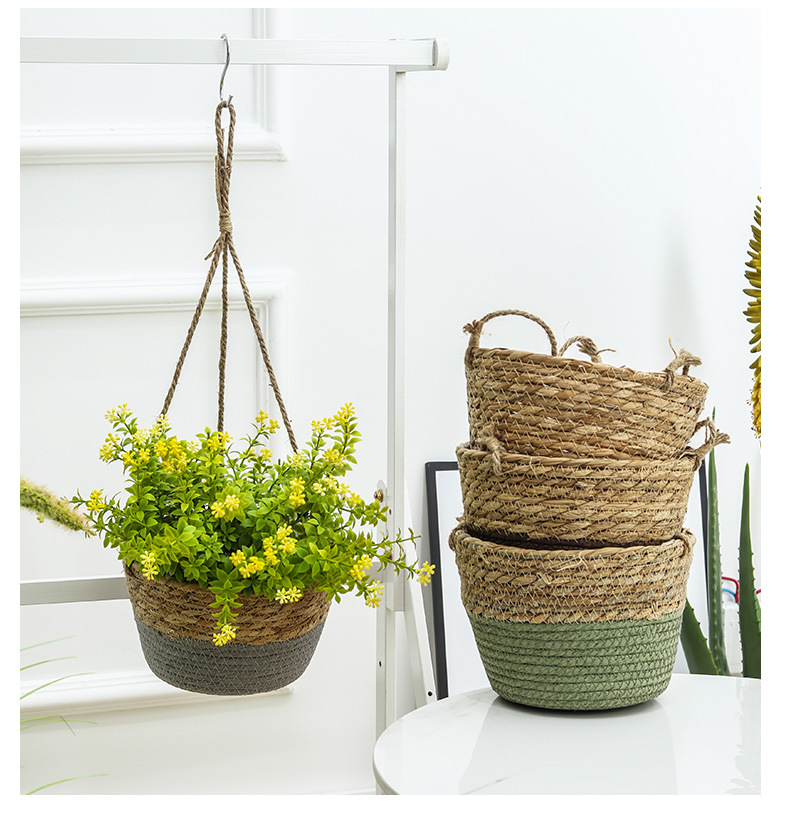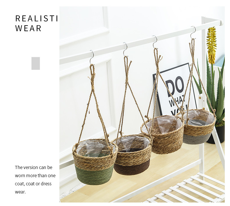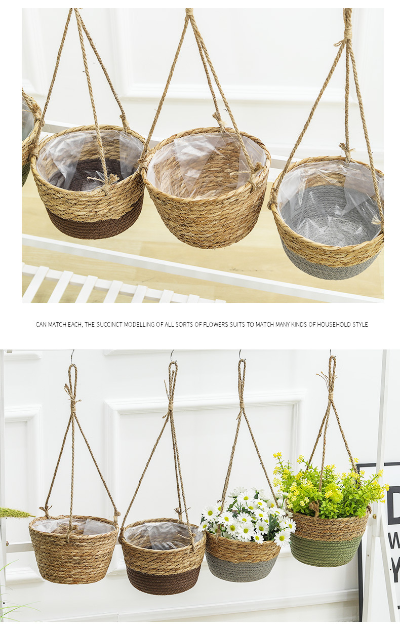 국경을 넘는 풀짚 화분, 가정용 꽃바구니, 발코니 장식용 화분, 녹색 식물 재배용 걸이형 화분, 드롭형 화분