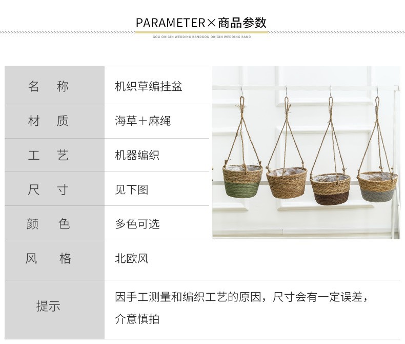 국경을 넘는 풀짚 화분, 가정용 꽃바구니, 발코니 장식용 화분, 녹색 식물 재배용 걸이형 화분, 드롭형 화분스토어 가기