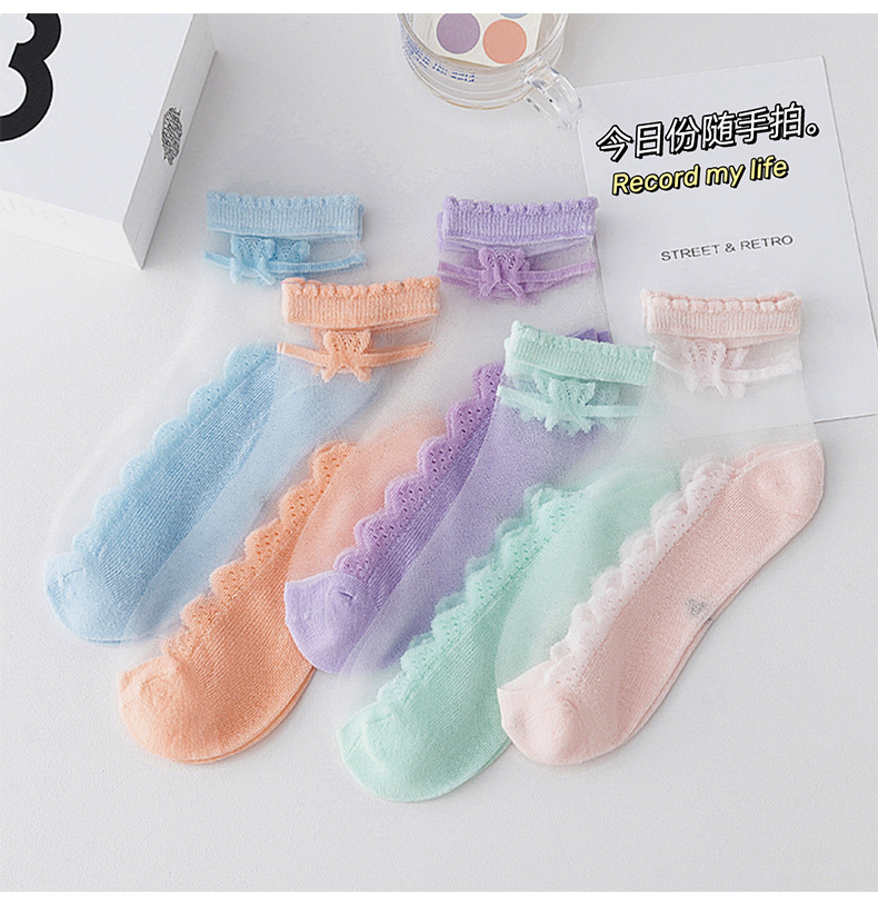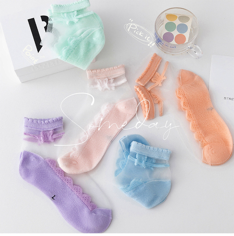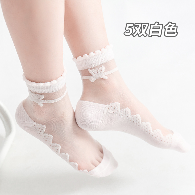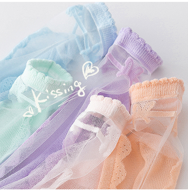 어린이 짧은 튜브 유리 실크 아이스 스타킹 소녀 여름 얇은 크리스탈 공주 레이스 양말 아기 소녀 여름 양말