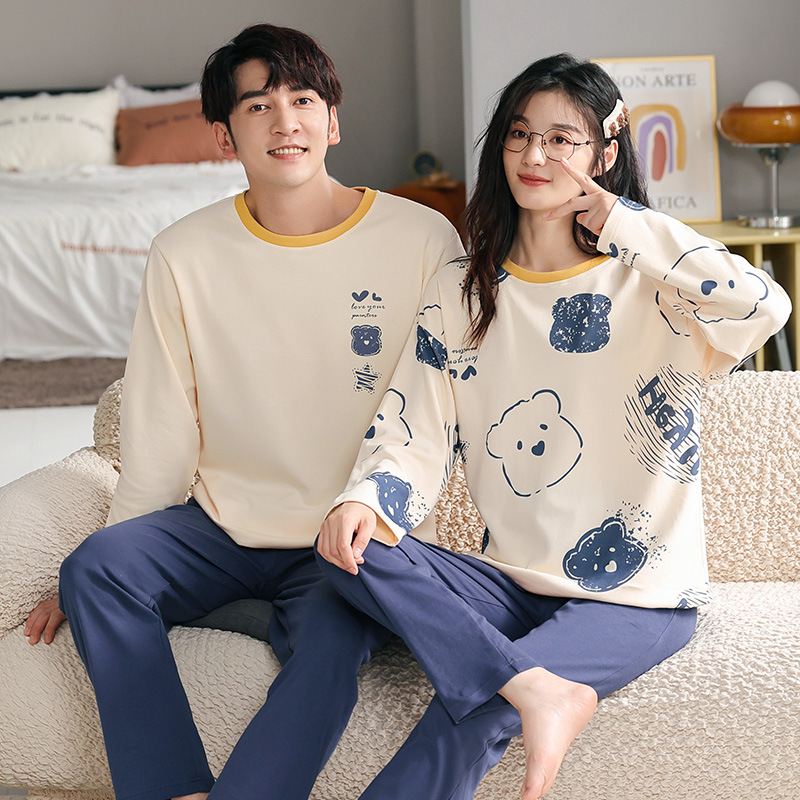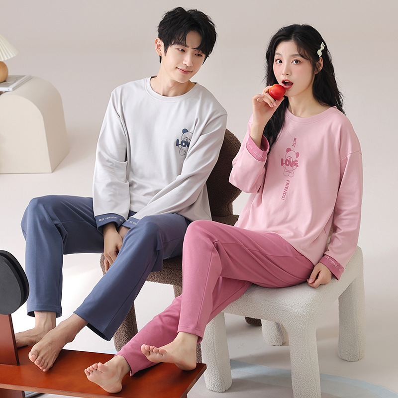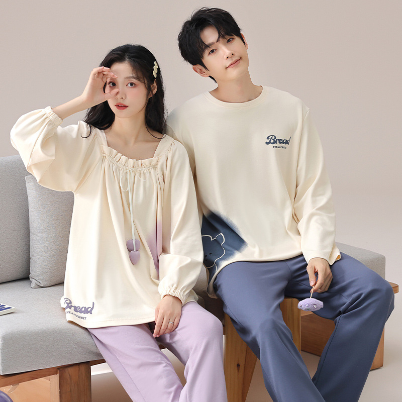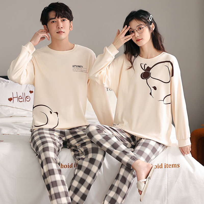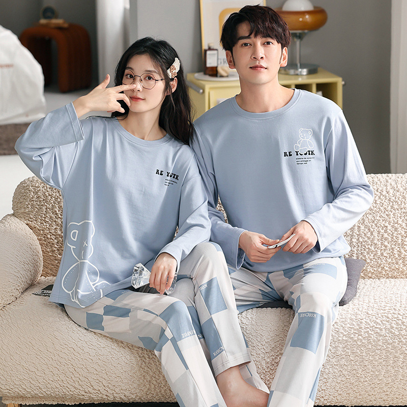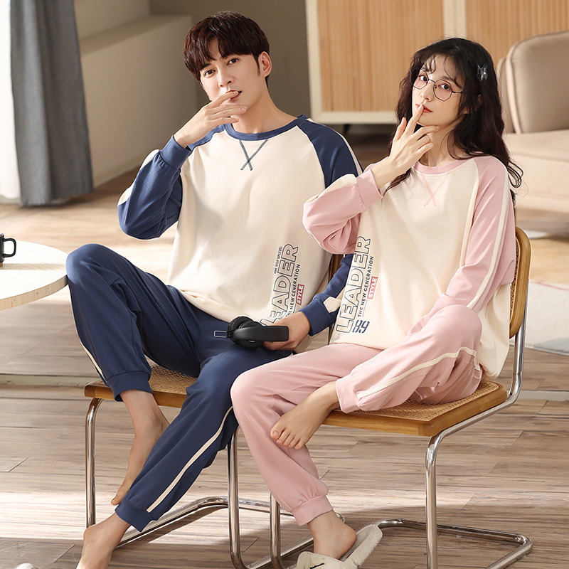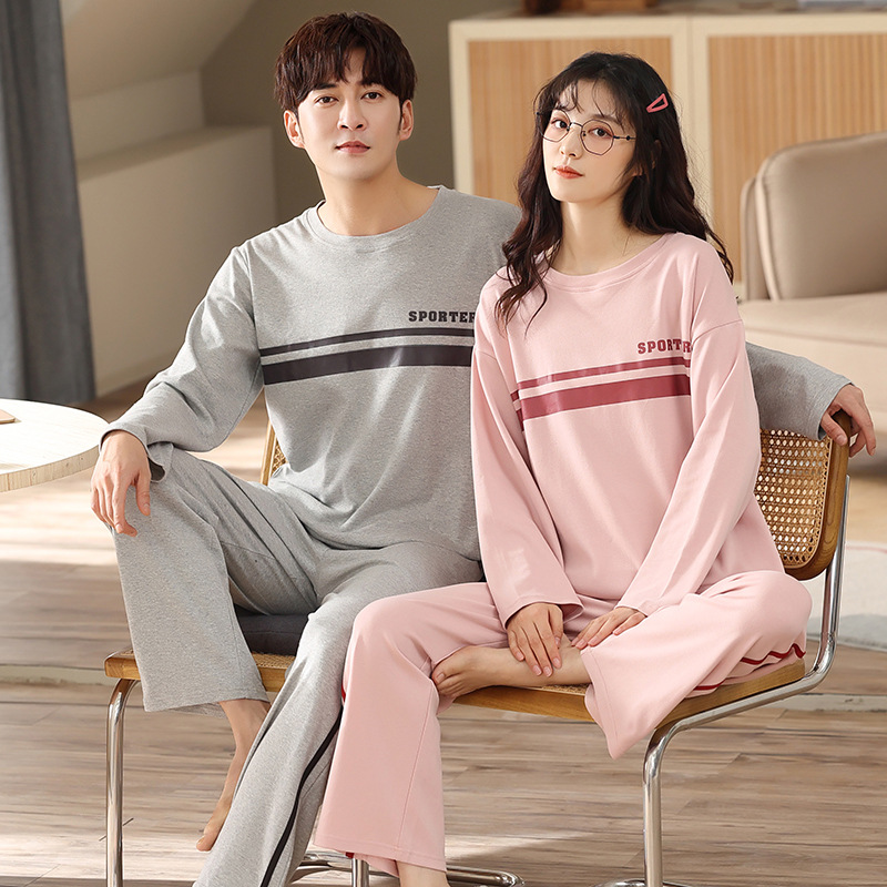 커플 잠옷 면 봄과 가을 새로운 숙녀 긴 소매 가정 옷 플러스 사이즈 남자의 가을 가정 옷 세트 도매스토어 가기