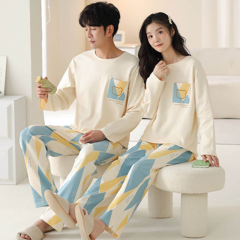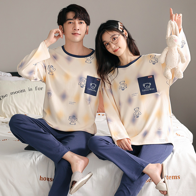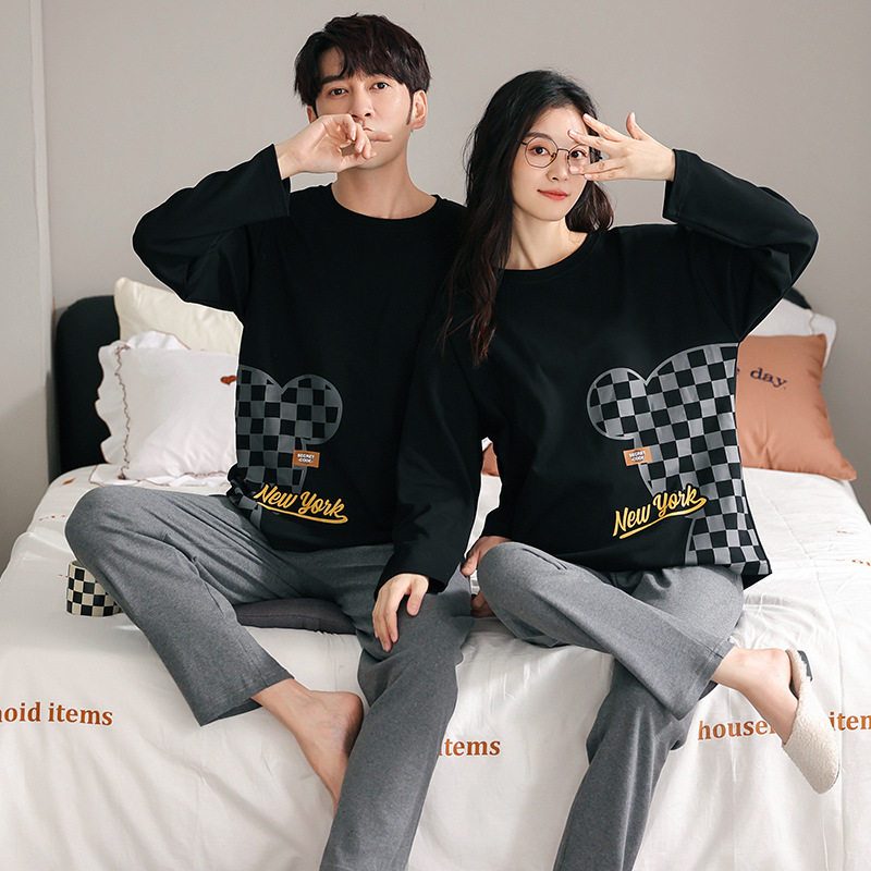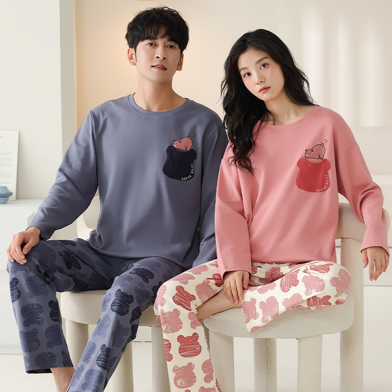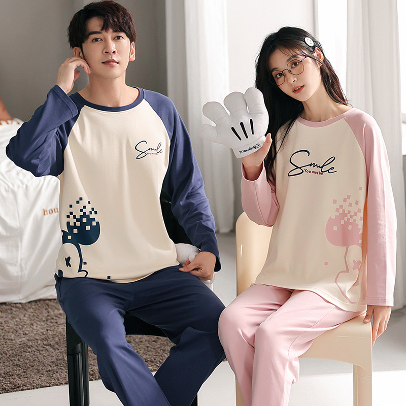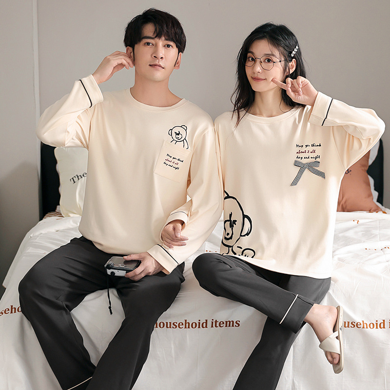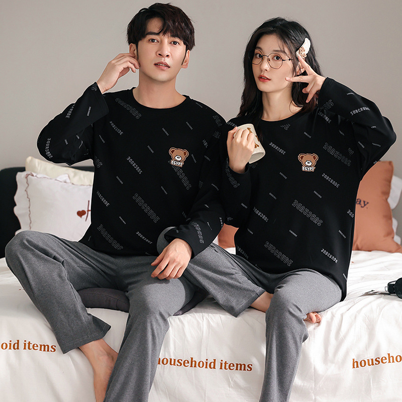 커플 잠옷 면 봄과 가을 새로운 숙녀 긴 소매 가정 옷 플러스 사이즈 남자의 가을 가정 옷 세트 도매스토어 가기