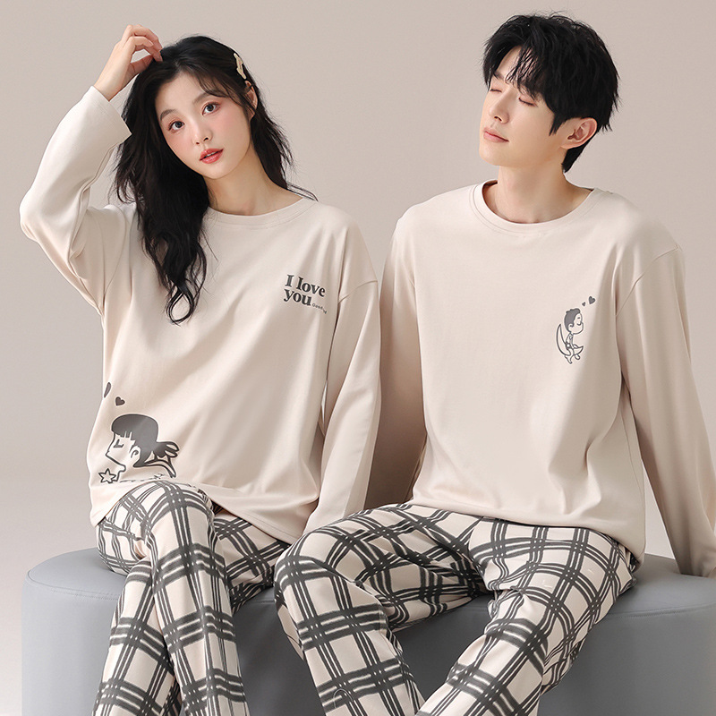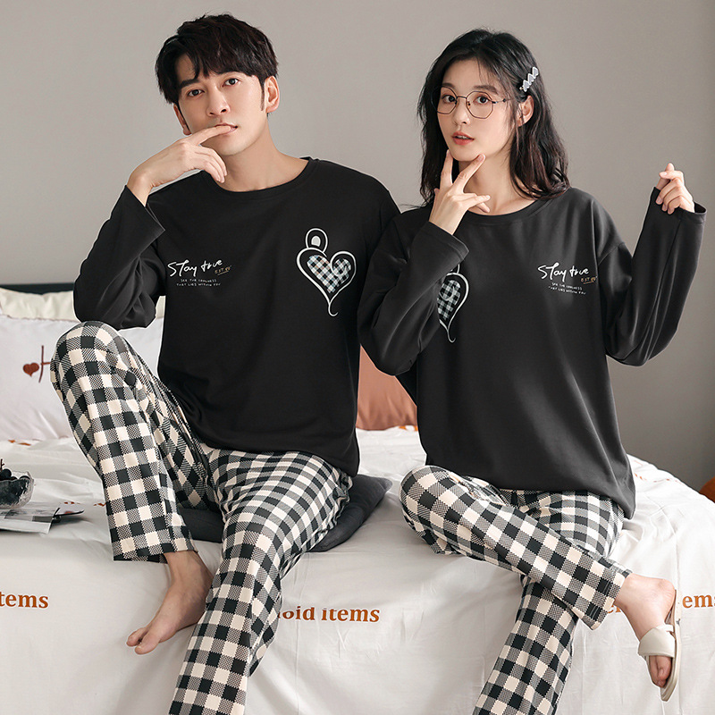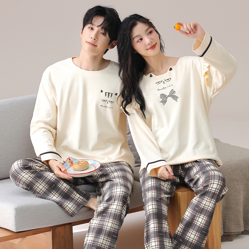 커플 잠옷 면 봄과 가을 새로운 숙녀 긴 소매 가정 옷 플러스 사이즈 남자의 가을 가정 옷 세트 도매