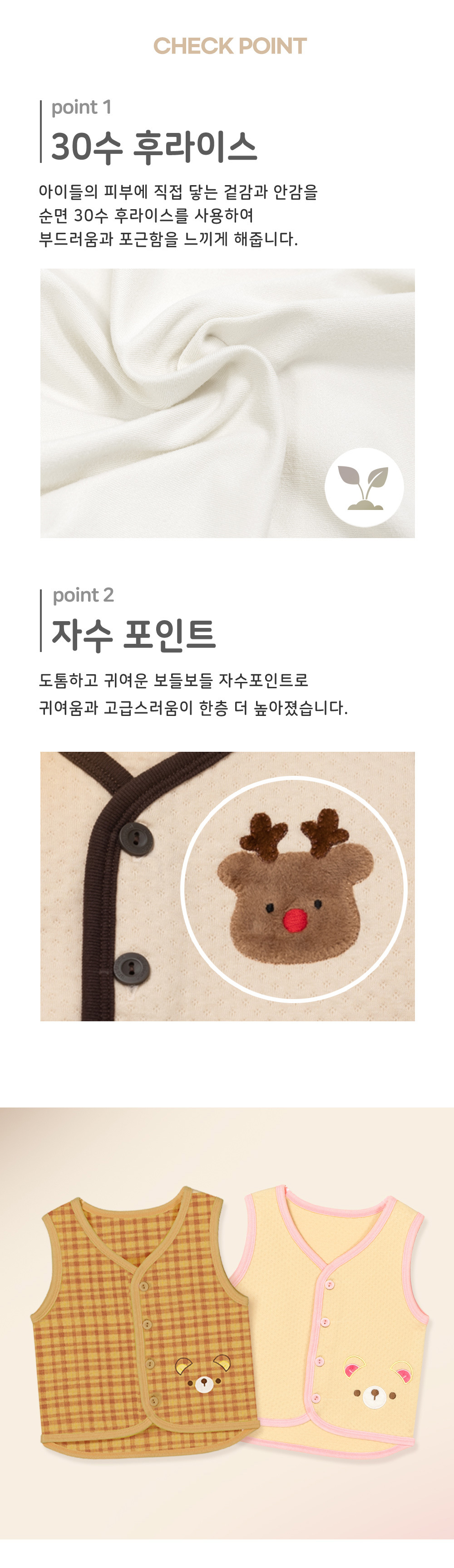 • 격자 무늬 곰 (3 층 따뜻한 싱글 조끼)