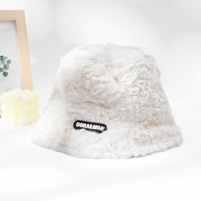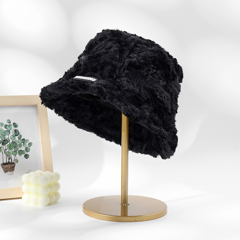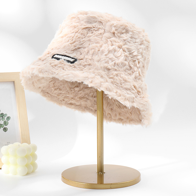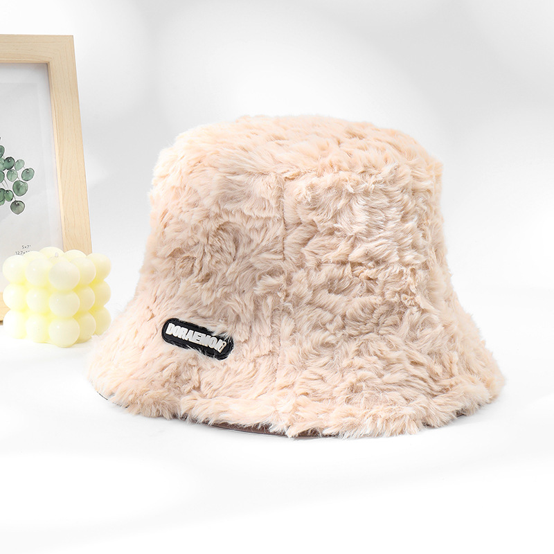 겨울 새 토끼 모피 작은 라벨 어부 모자 가을과 겨울 한국 스타일 모든 매치 따뜻한 버킷 모자 플러시 얼굴을 보여주는 작은 모자