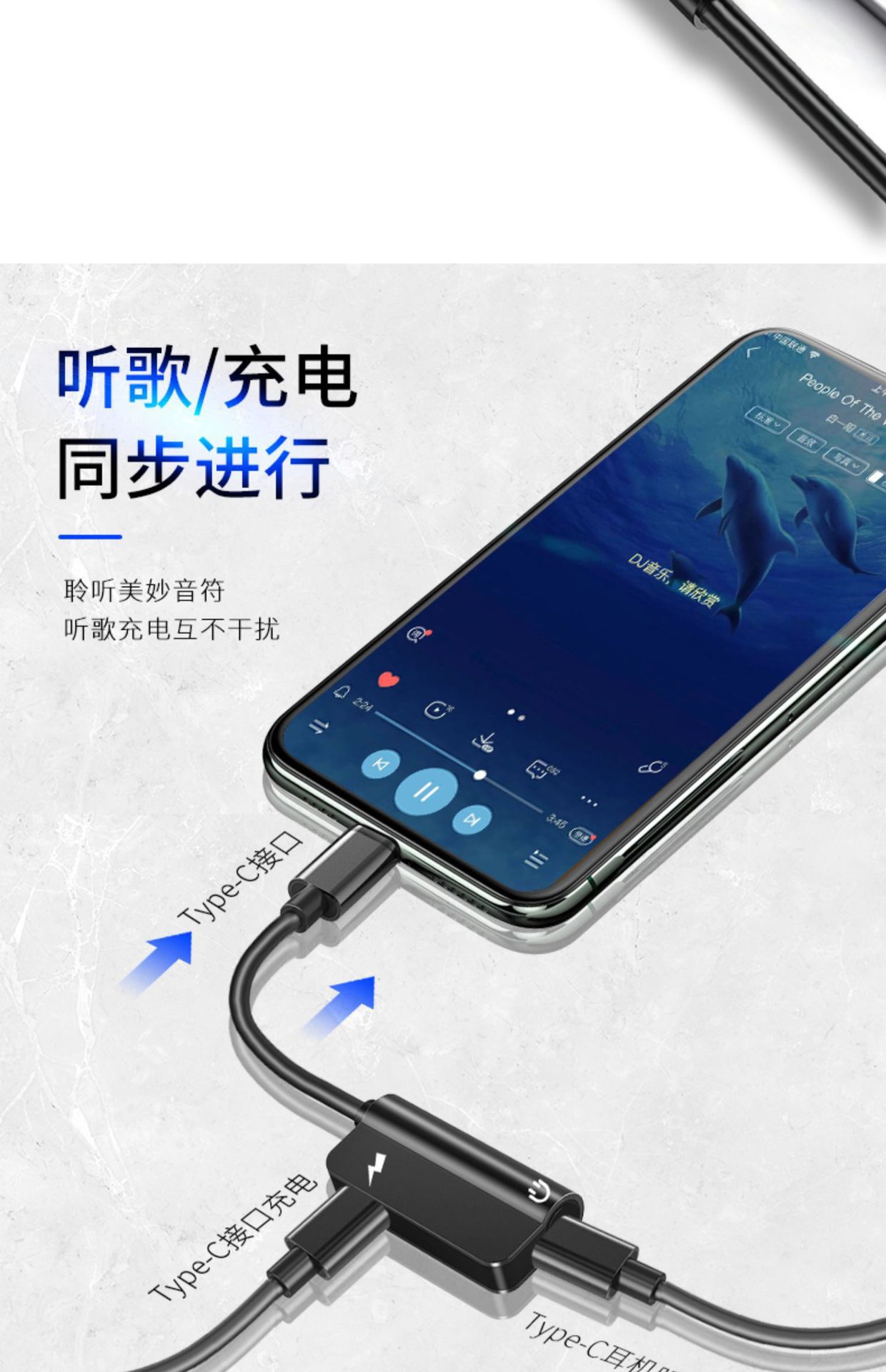 Typec 헤드폰 어댑터 3.5mm 인터페이스 충전 및 음악 듣기 2-in-1 TYPEC 휴대폰 변환기 케이블스토어 가기