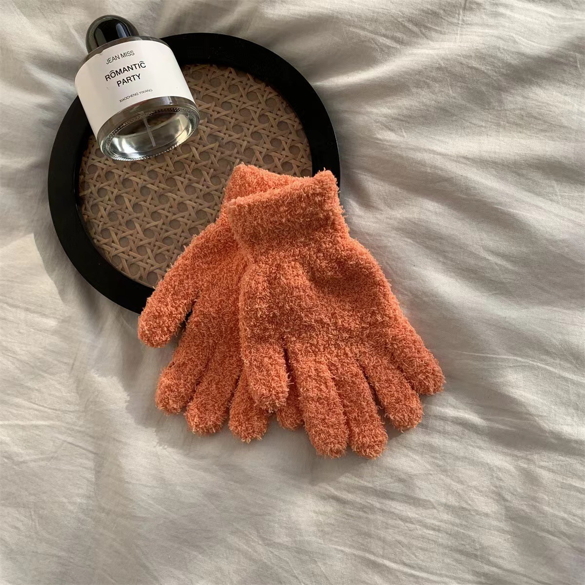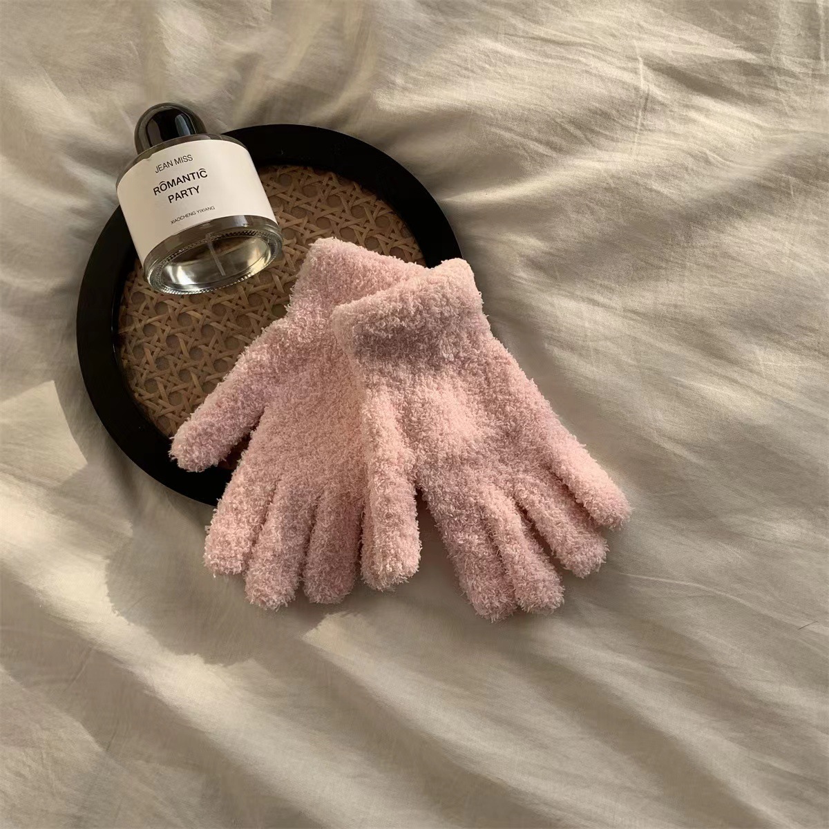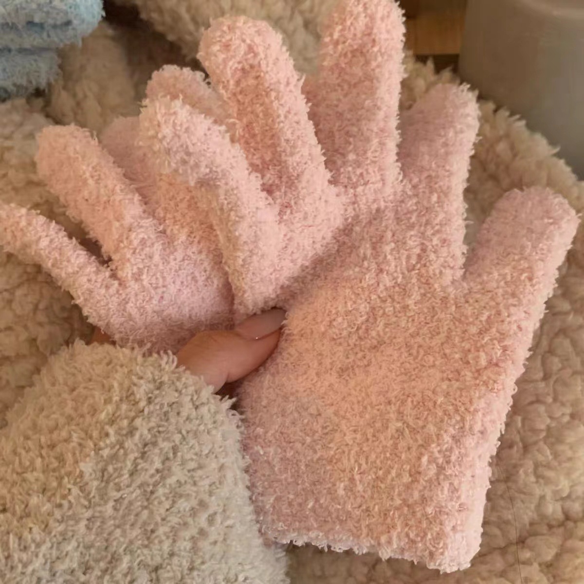 일본과 한국의 새로운 산호 양털 장갑 귀여운 간단한 캔디 컬러 다섯 손가락 가을과 겨울 패션 학생들에게 따뜻한스토어 가기