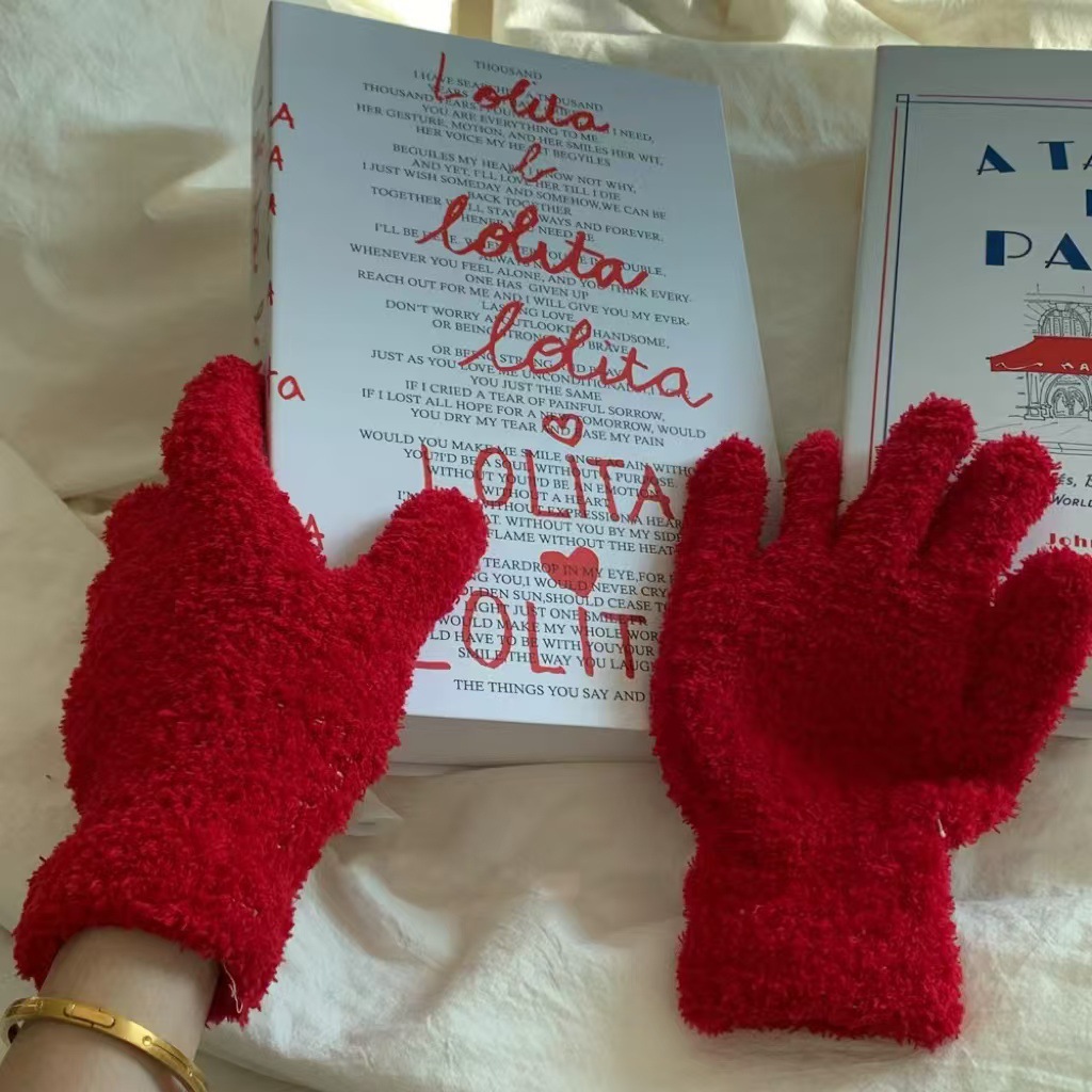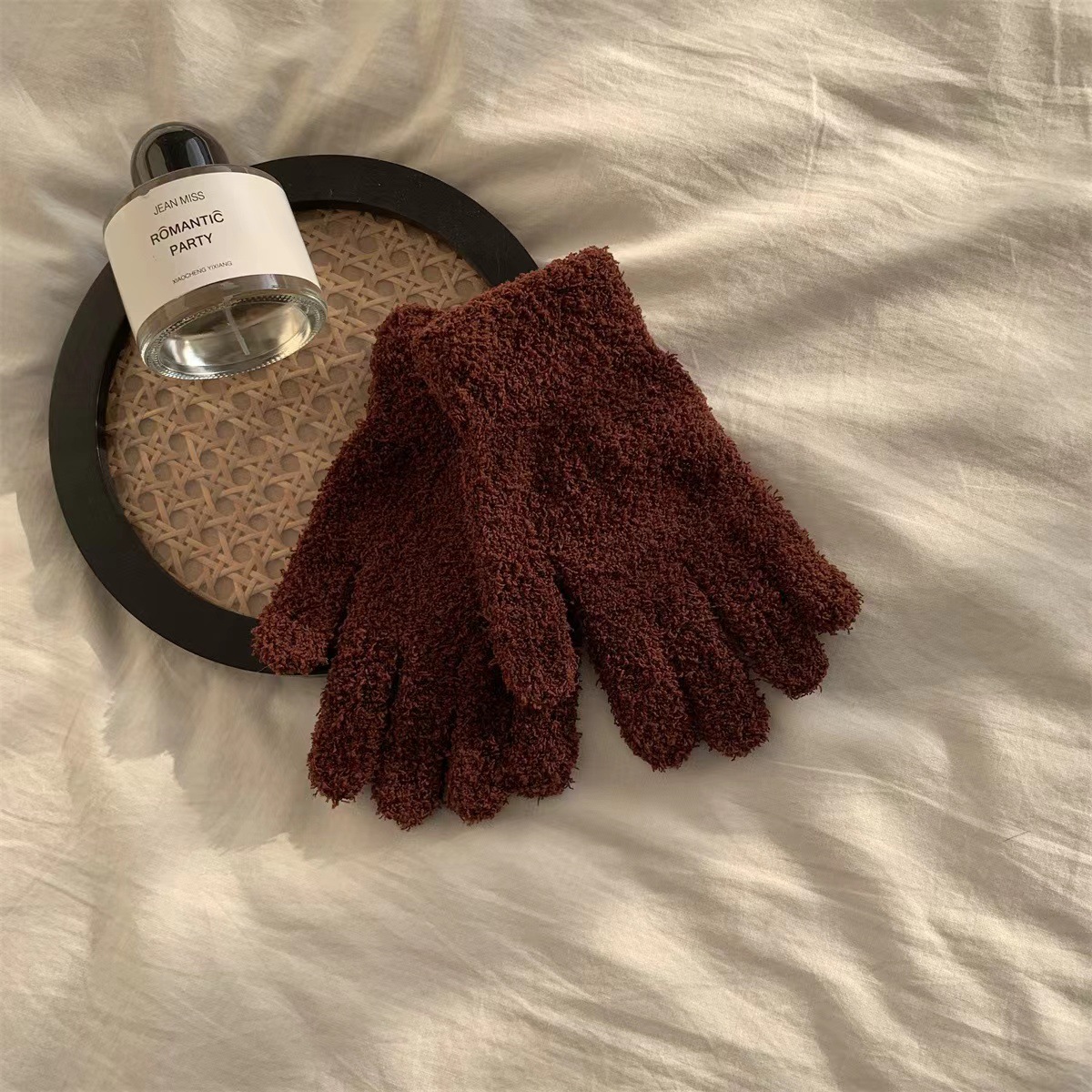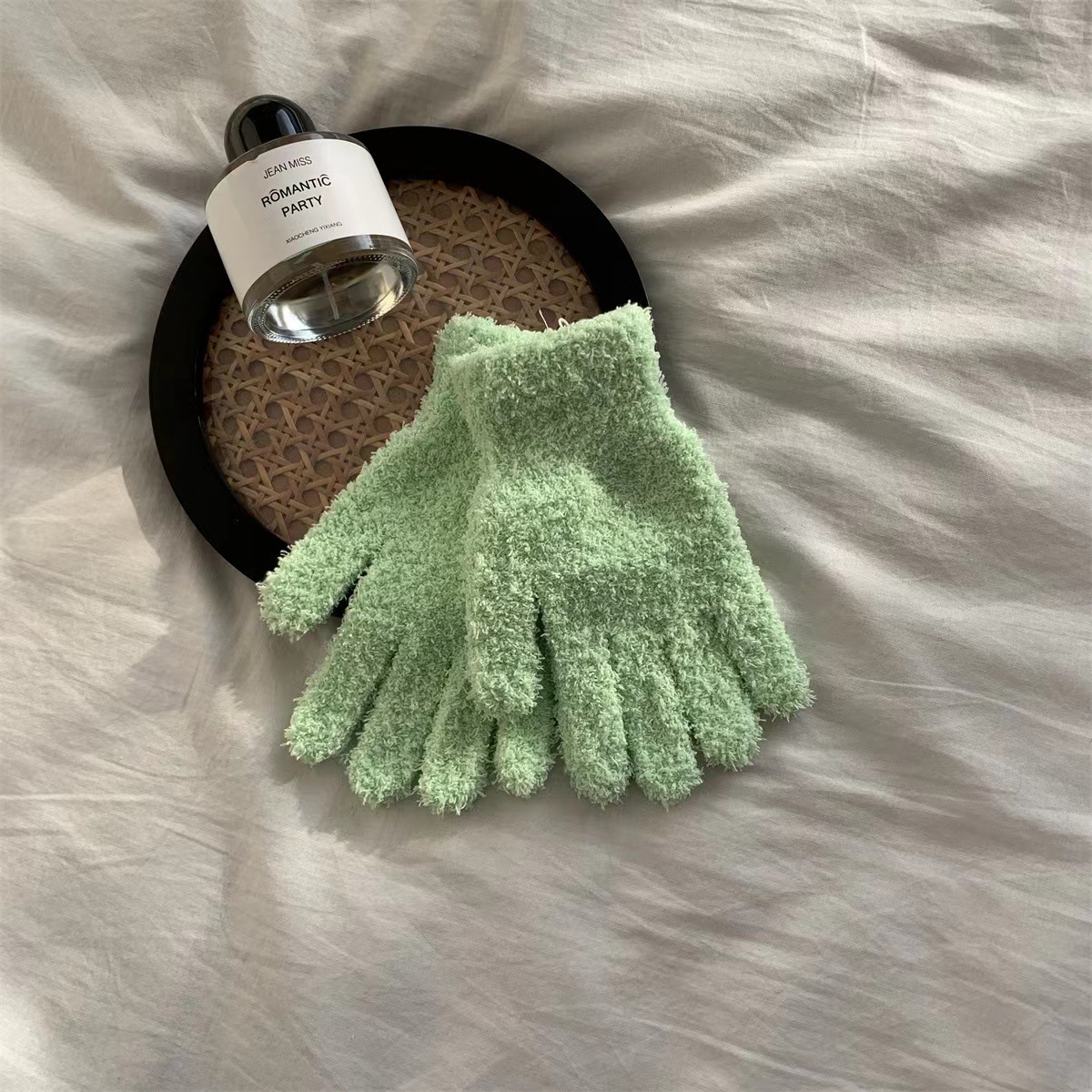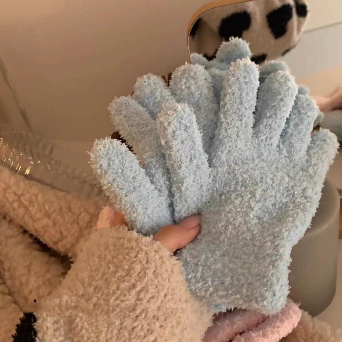 일본과 한국의 새로운 산호 양털 장갑 귀여운 간단한 캔디 컬러 다섯 손가락 가을과 겨울 패션 학생들에게 따뜻한스토어 가기