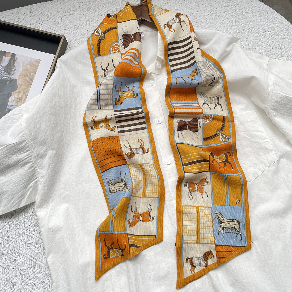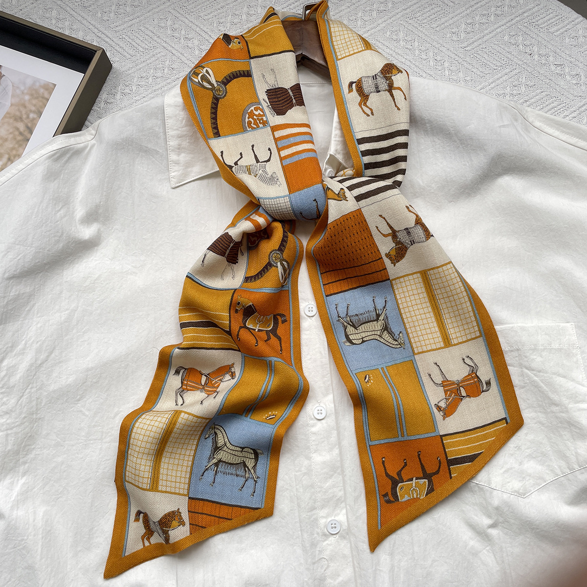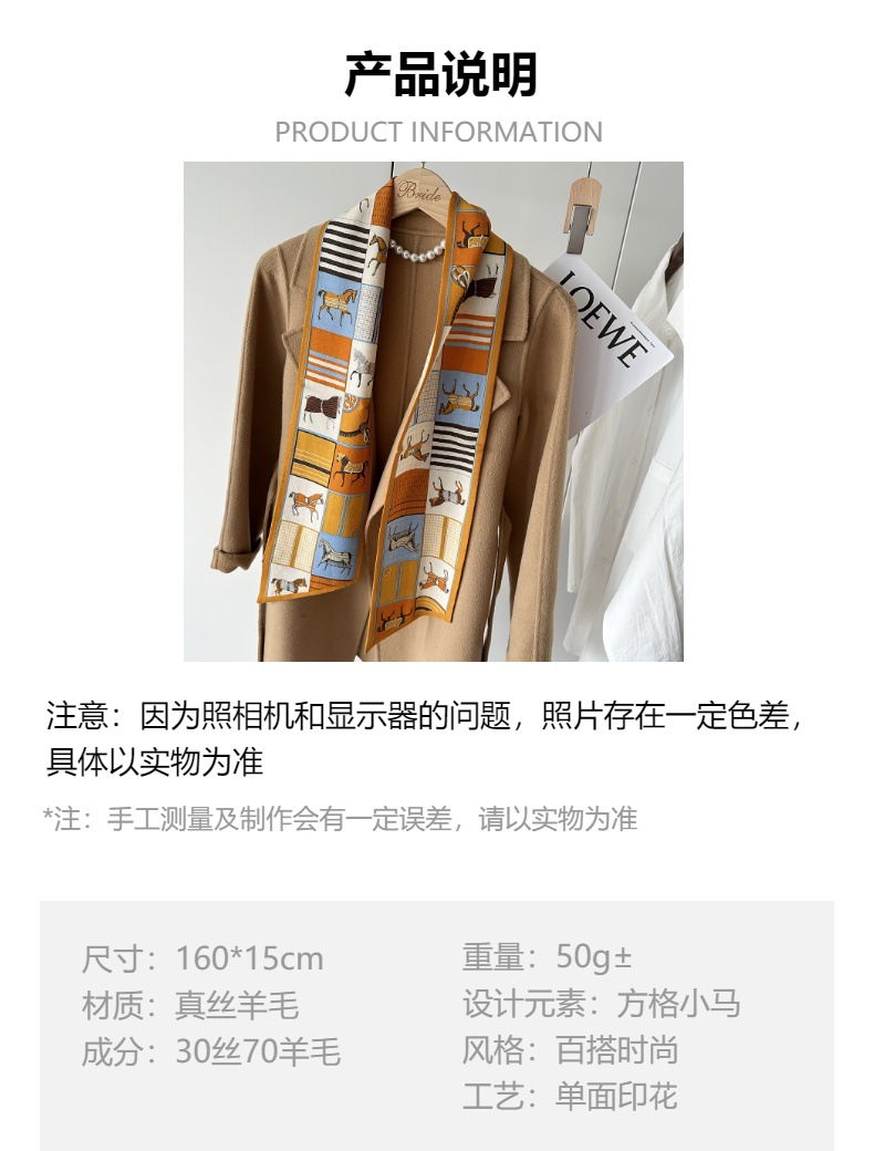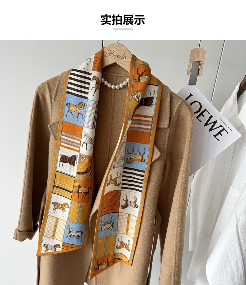 고급 한국식 체크 무늬 조랑말 실크 울 롱 리본 여성 가을과 겨울 따뜻한 실크 울 스카프 도매스토어 가기