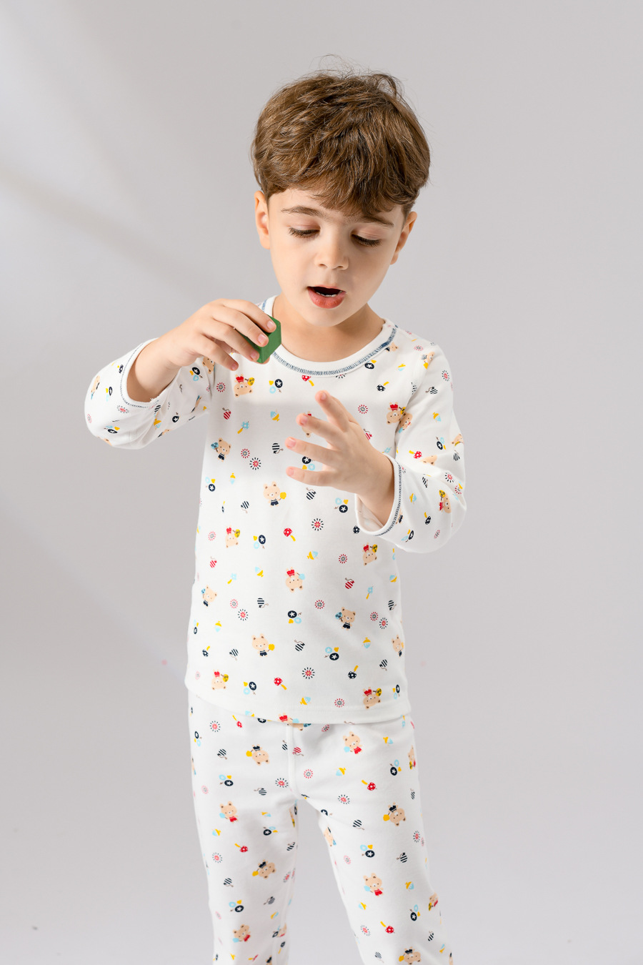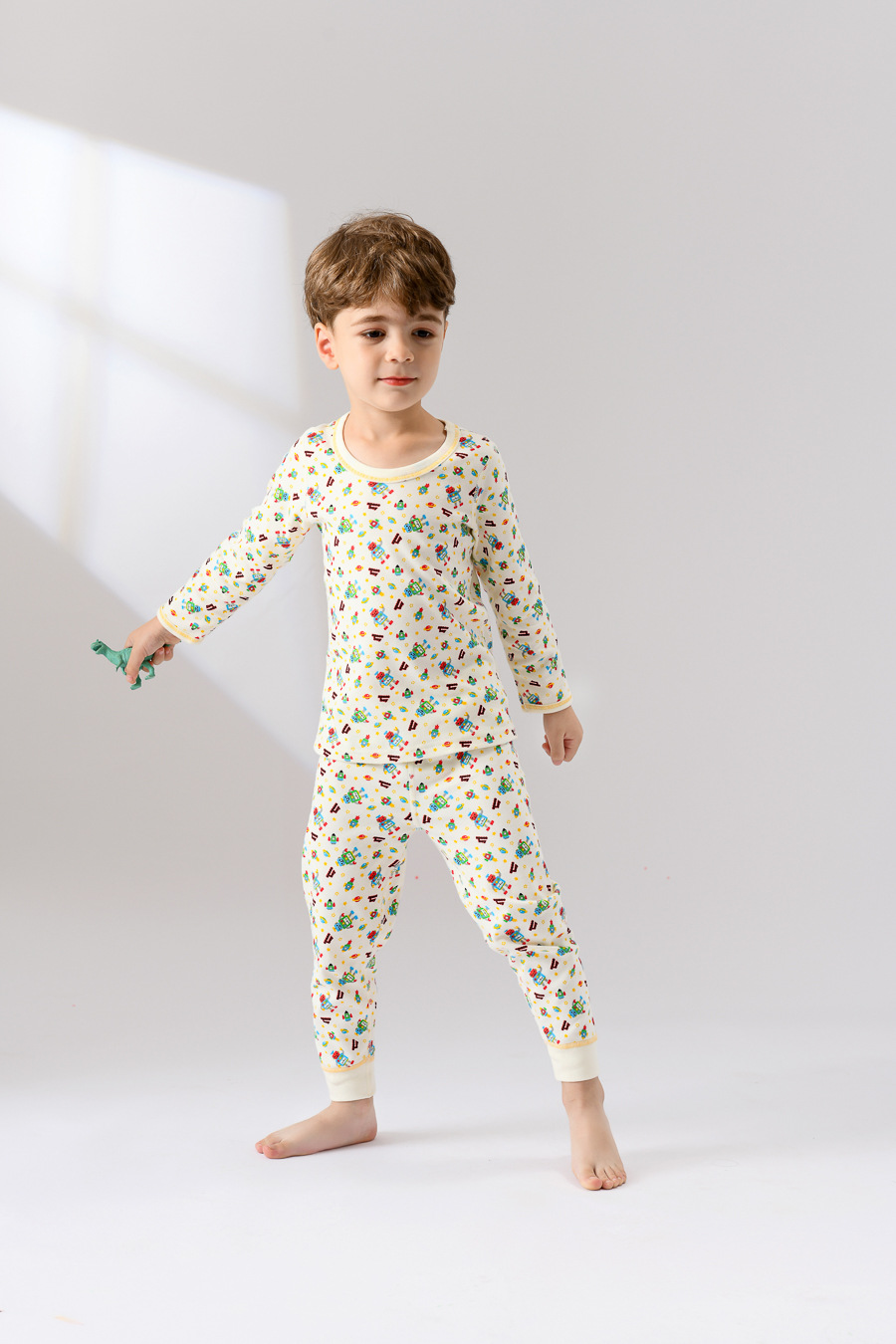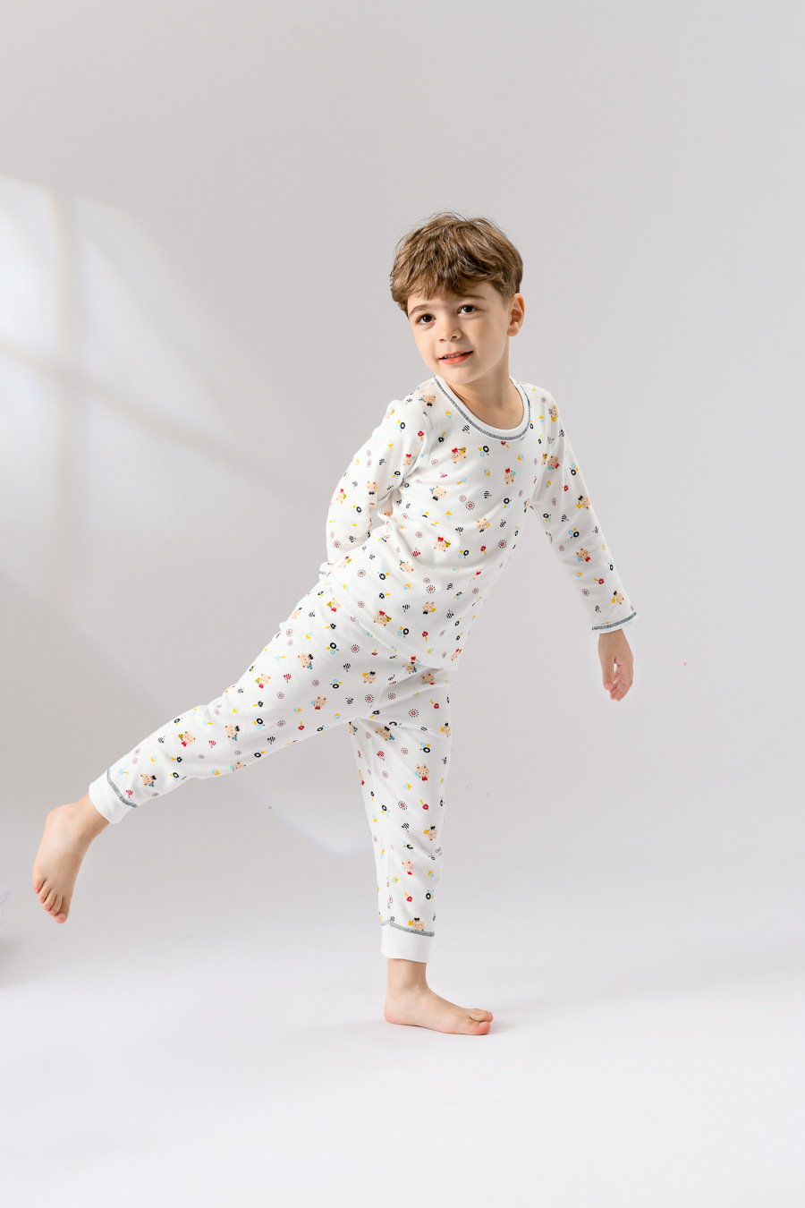 유통 다이파 마쓰야 니시모토 수출 일본 가정 의류 세트 어린이 소년 자동차 잠옷 긴 소매 면