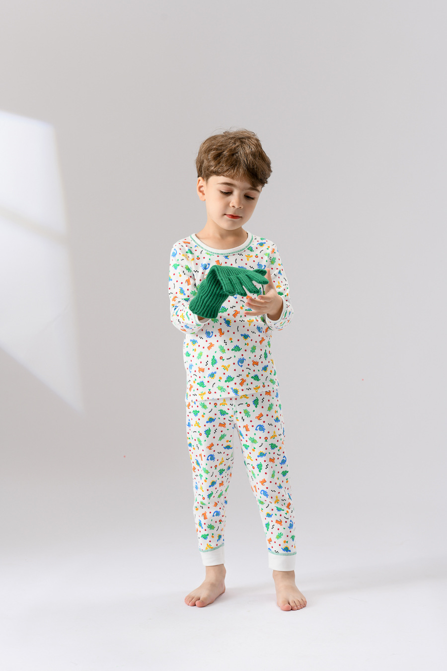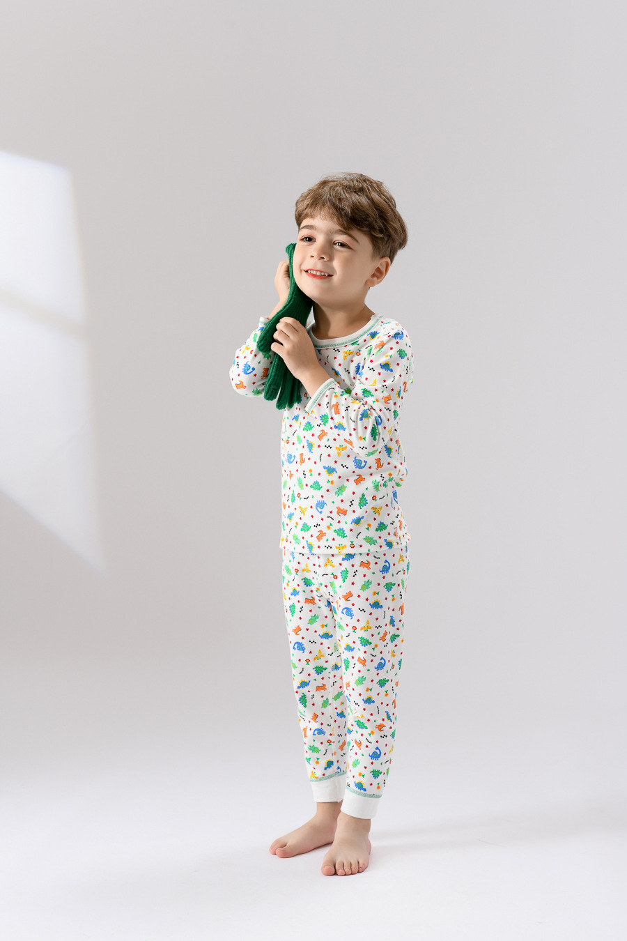 • TZ715 뼈없는 바느질 두꺼운 샌딩 레드 스타 전체 인쇄 공룡 세트 (1 세트)