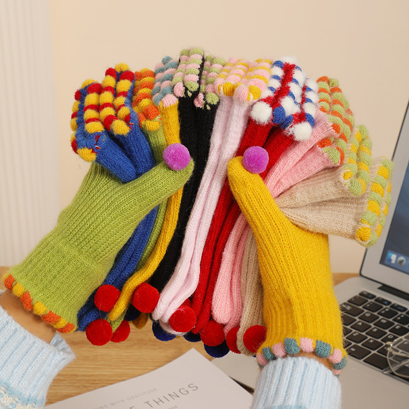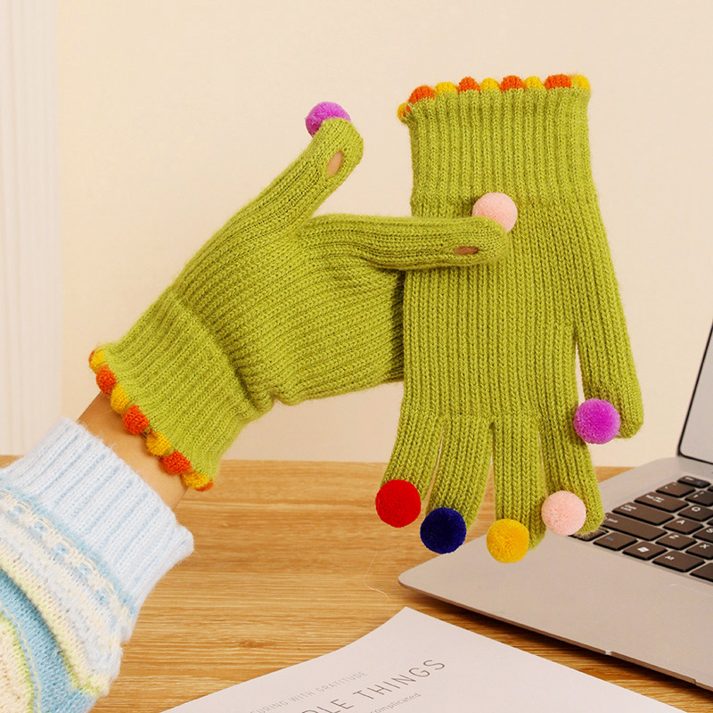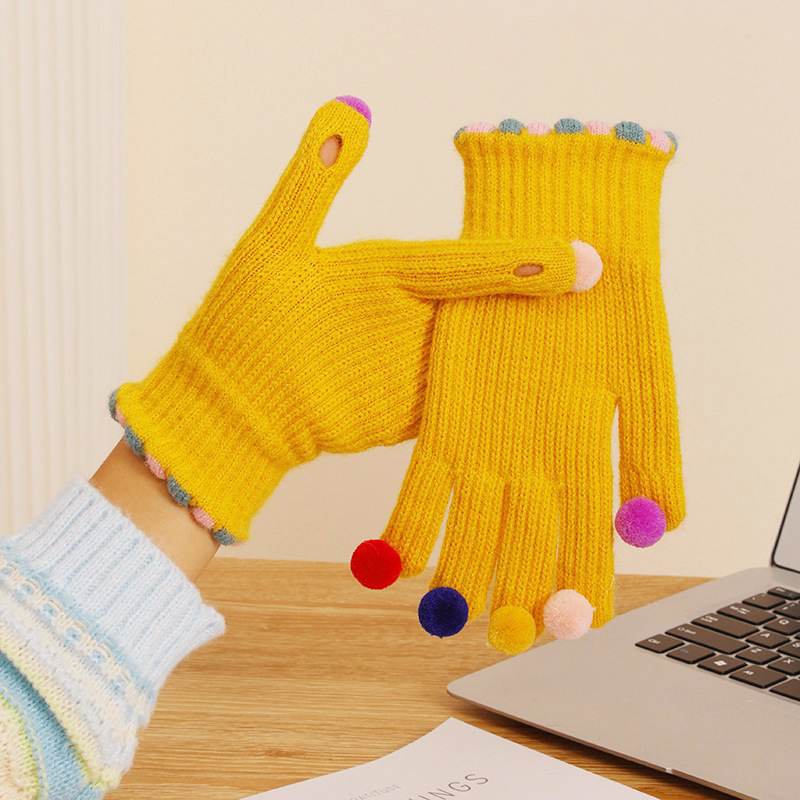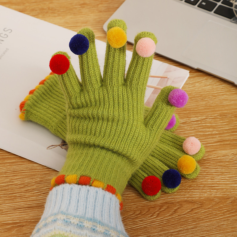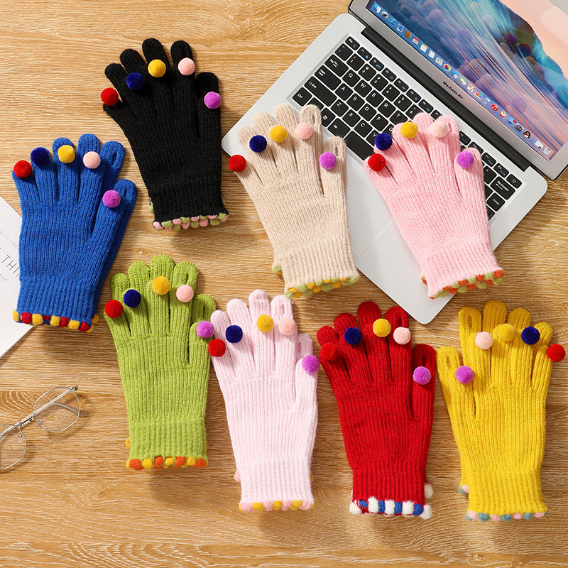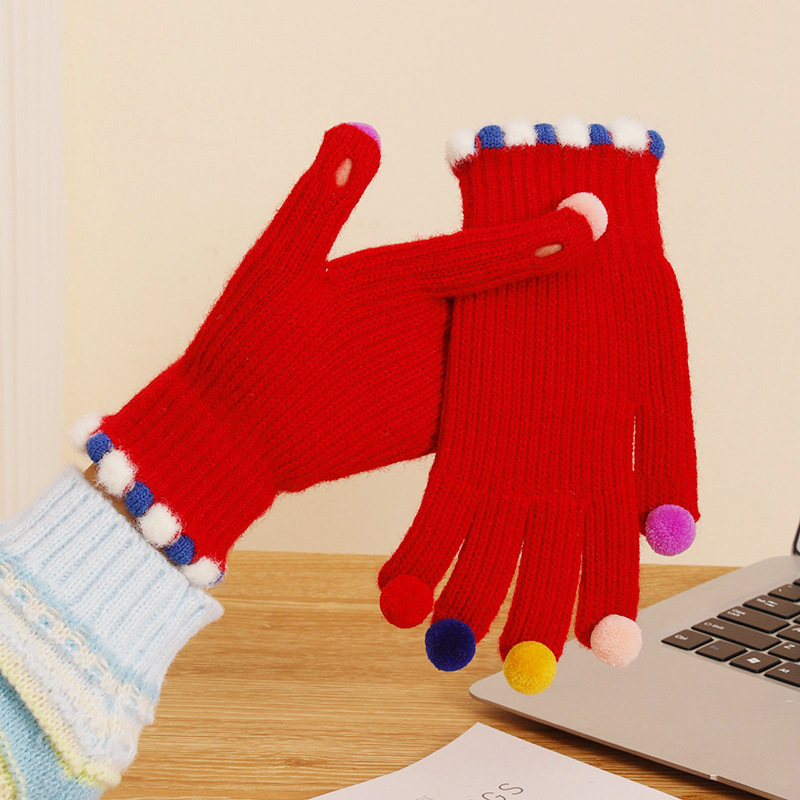 귀여운 한국 in 달콤한 콩 exuter 울 니트 다섯 손가락 장갑 겨울 여자의 터치 스크린 따뜻한 사이클링 다섯 손가락 장갑