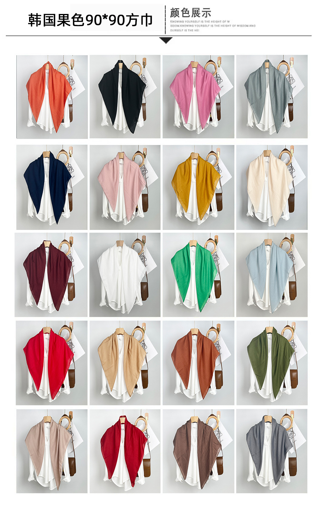 국경 간 공급 단색 90 사각형 스카프 여성 스타일 단색 캐주얼 가방 터번 선 스크린 목도리 장식 스카프 도매스토어 가기