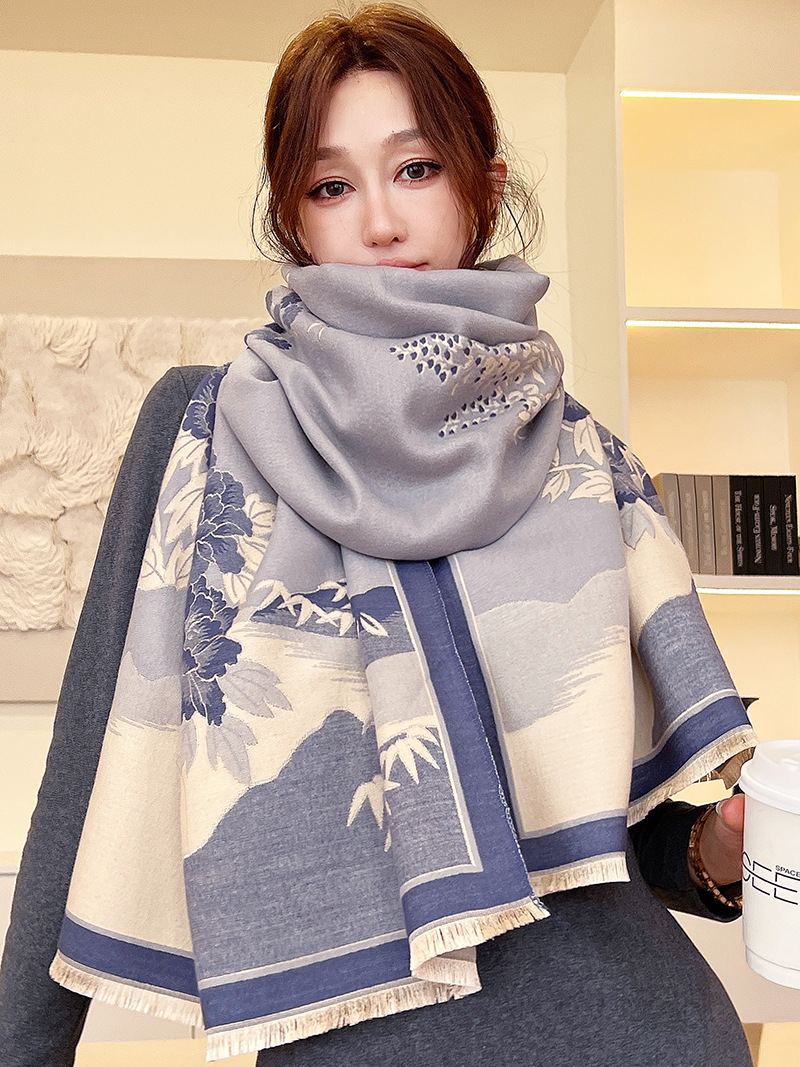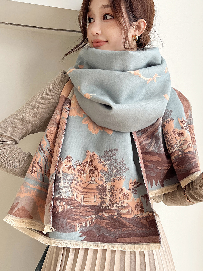 중국 스타일의 캐시미어 같은 스카프 여성의 가을과 겨울 긴 대형 목도리 이중 사용 스카프 국가 패션 에어컨 따뜻한 망토