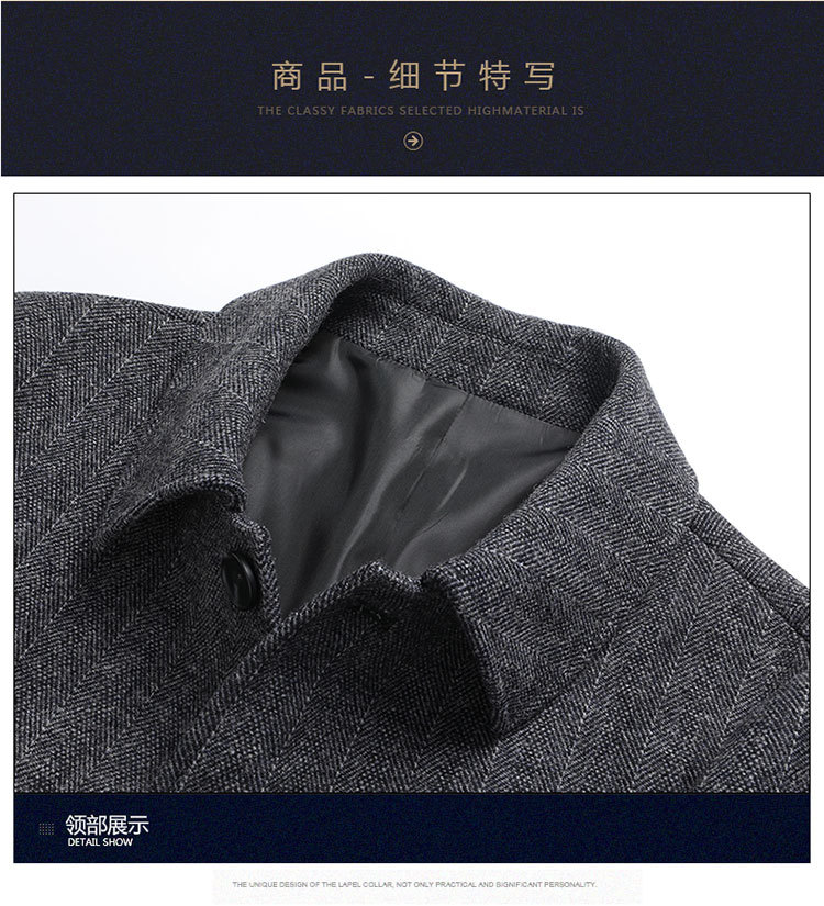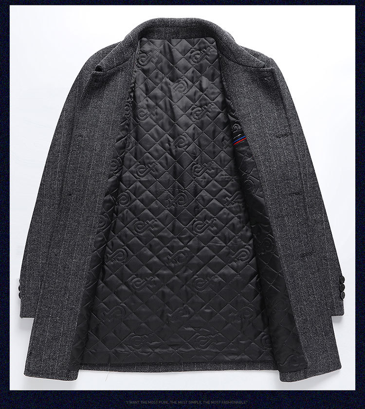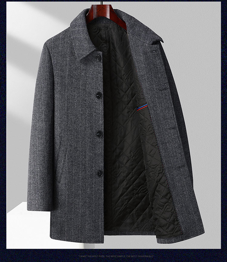 울 울 코트 남성 중간 길이 한국 스타일 캐주얼 남성 영 및 중년 트렌치 코트 겨울 두꺼운 모직 코트 라펠