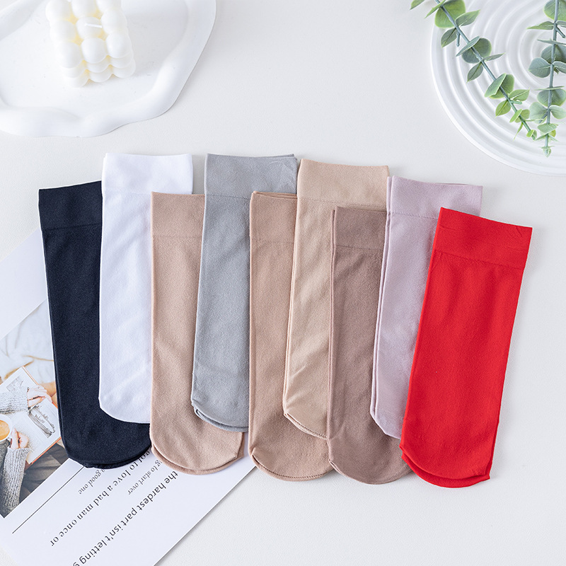 가을과 겨울 새로운 여성의 두꺼운 짧은 스타킹 안티 후크 두꺼운 실크 스타킹 단색 느슨한 살색 스타킹 중간 길이 스타킹