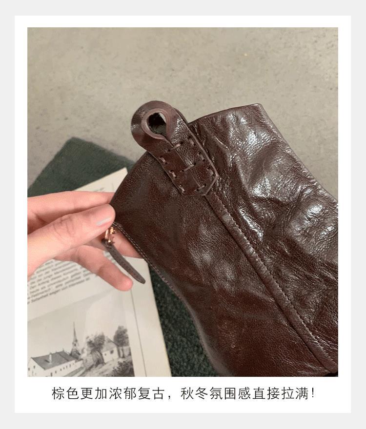 즉시 배송 런던 홀리데이~ 패셔너블한 뾰족코 V컷 슬림핏 두꺼운 굽 주름감 있는 웨스턴 숏부츠 여성용스토어 가기