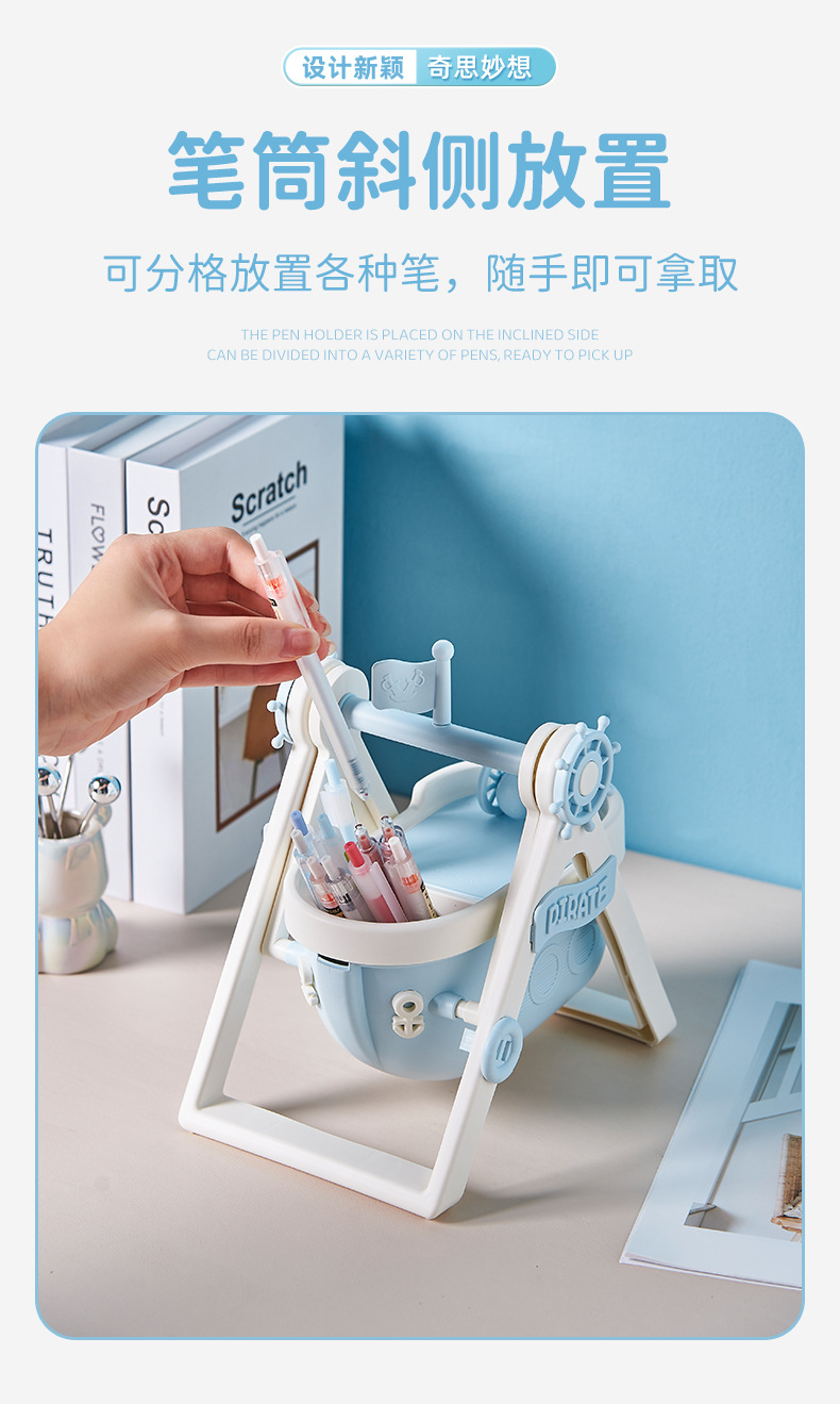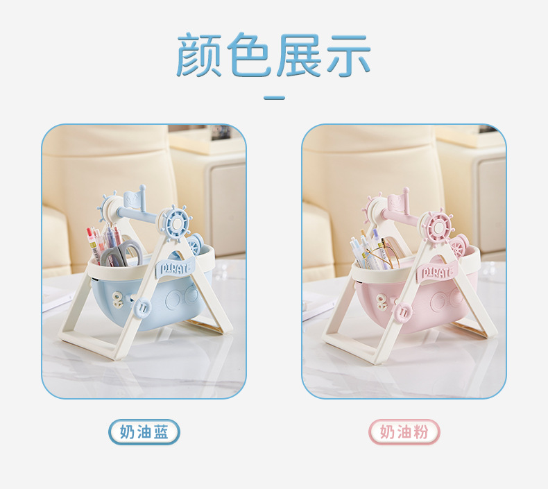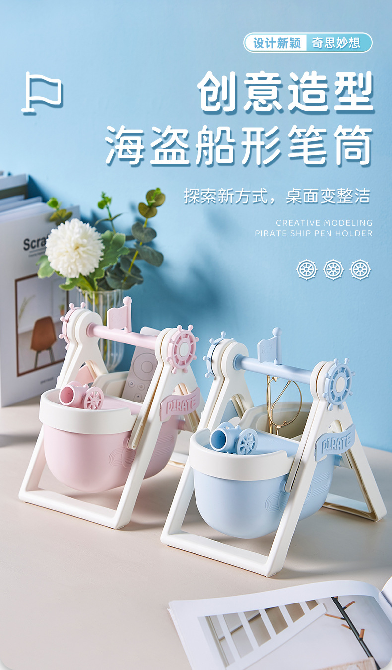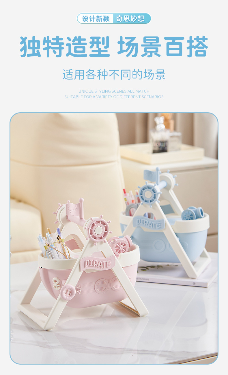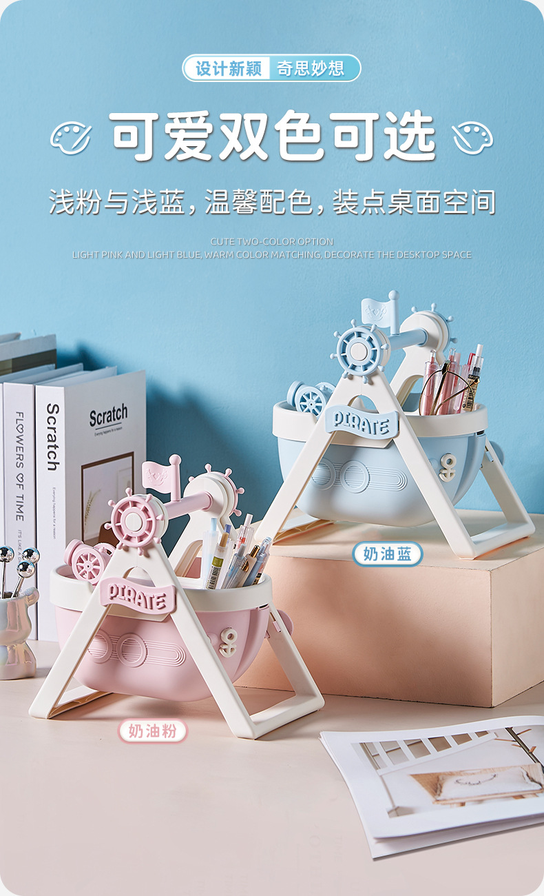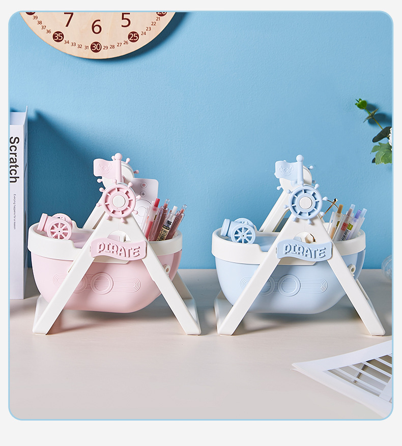 크리 에이 티브 만화 해적 선박 데스크탑 펜 귀여운 소녀 학생 장식 장식품 다기능 보관함