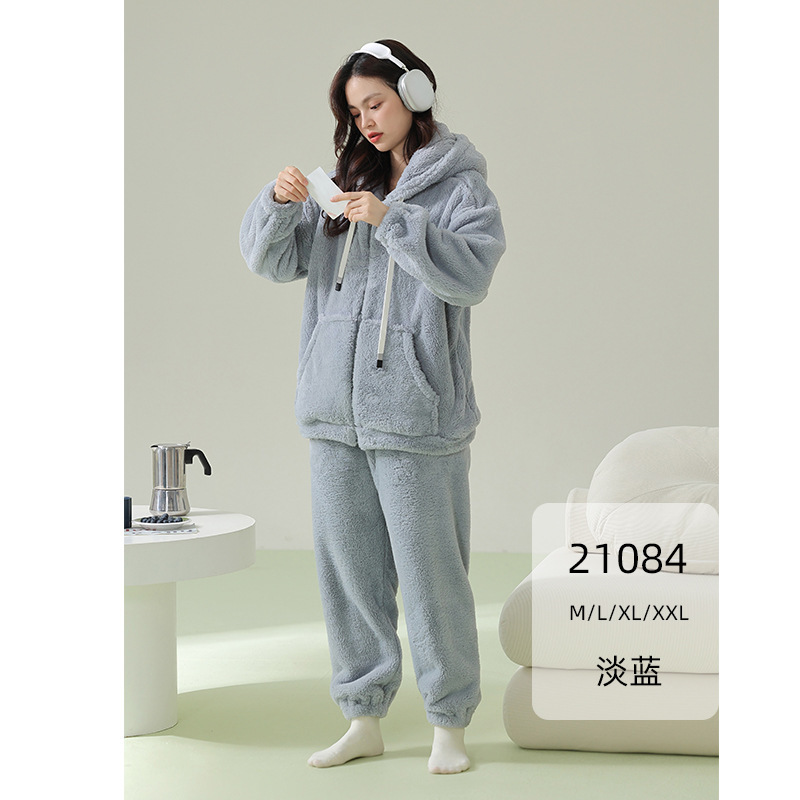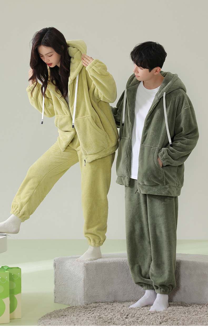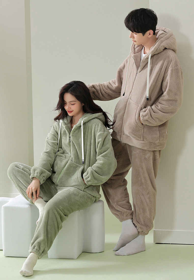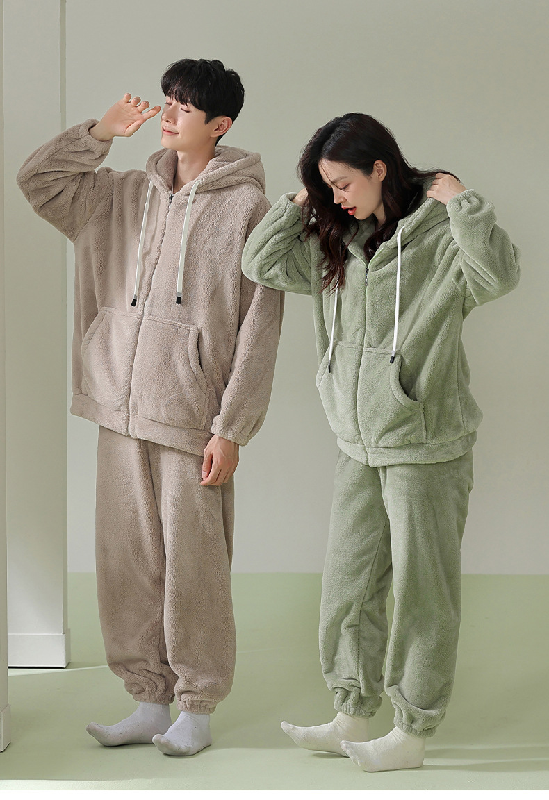[소프트 벨벳] 가을과 겨울 커플 잠옷 여성 산호 벨벳 패딩 플란넬 남성 가정 옷스토어 가기