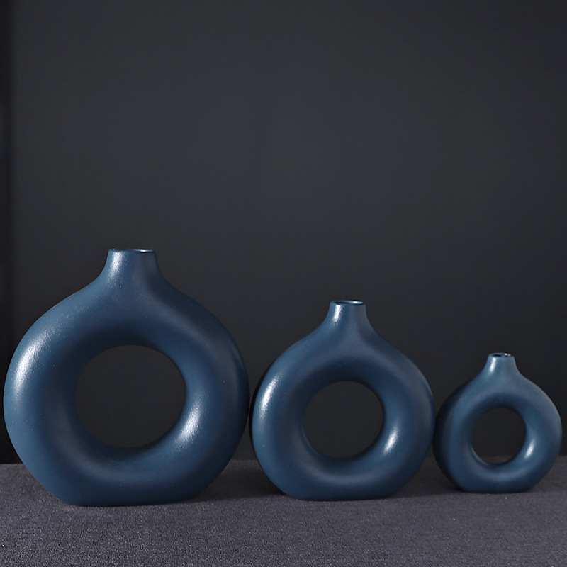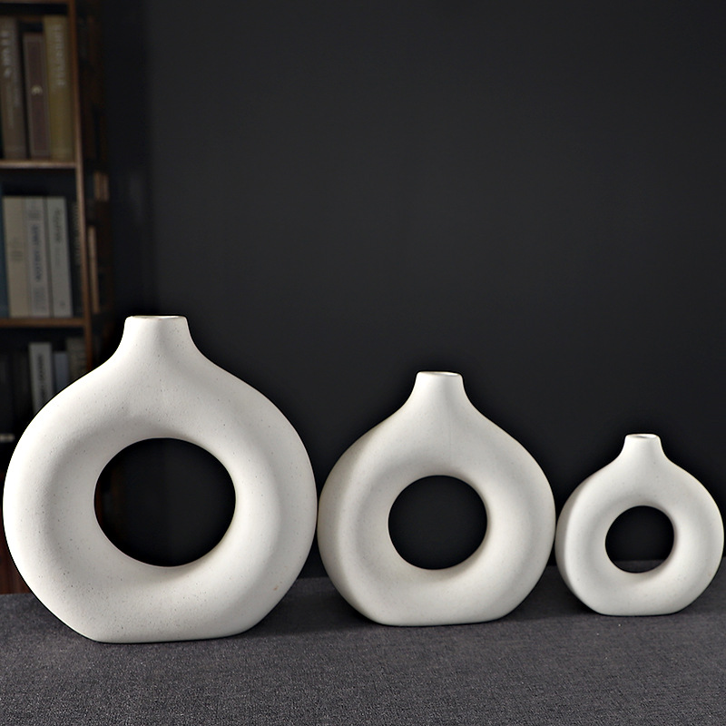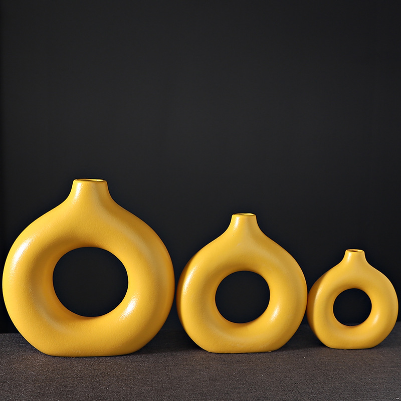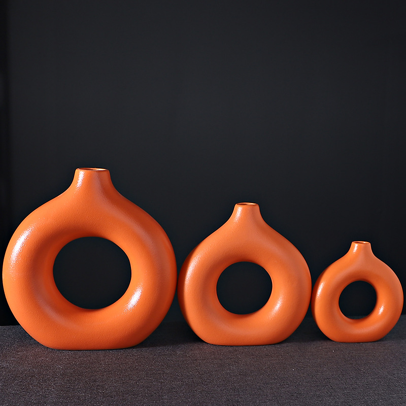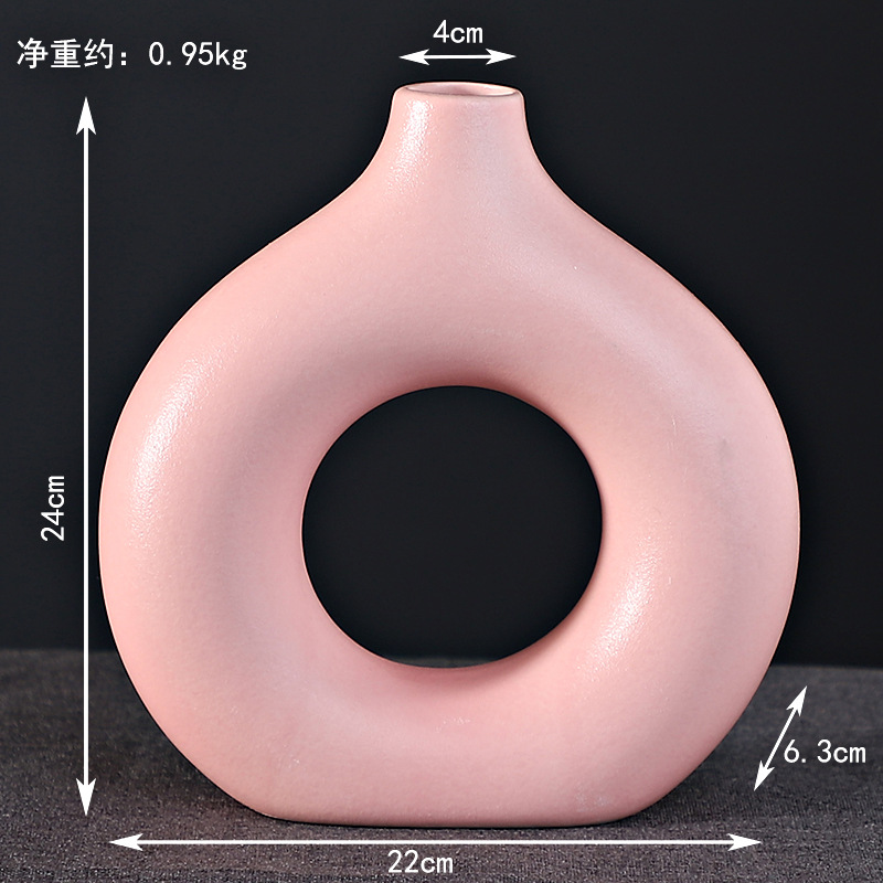 바람 도넛 세라믹 꽃병 도매 B & B 호텔 거실 장식 말린 꽃스토어 가기